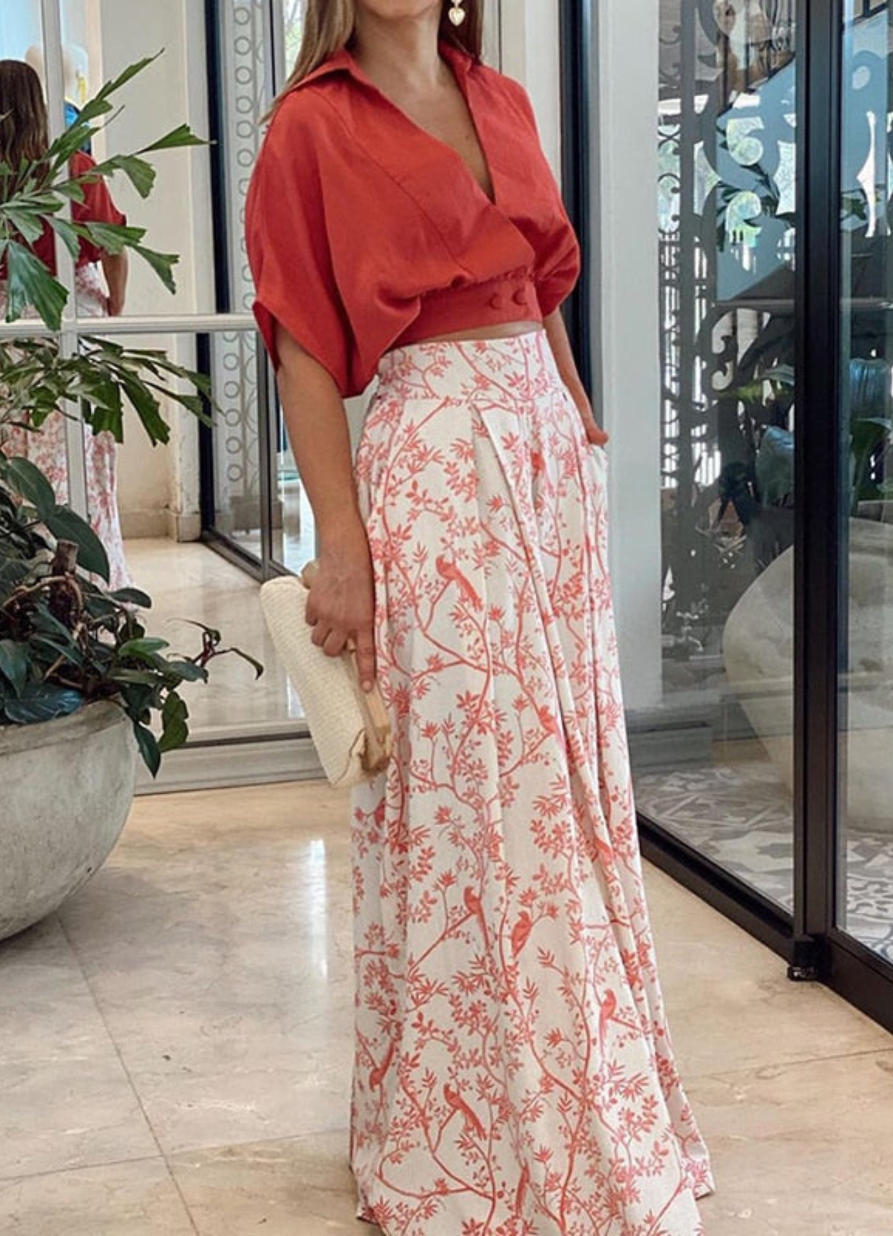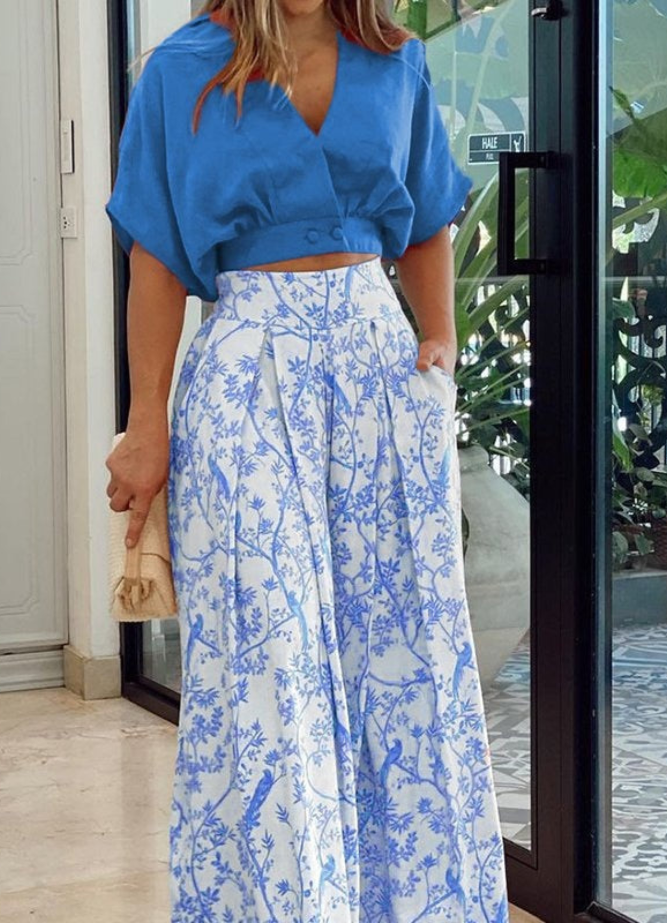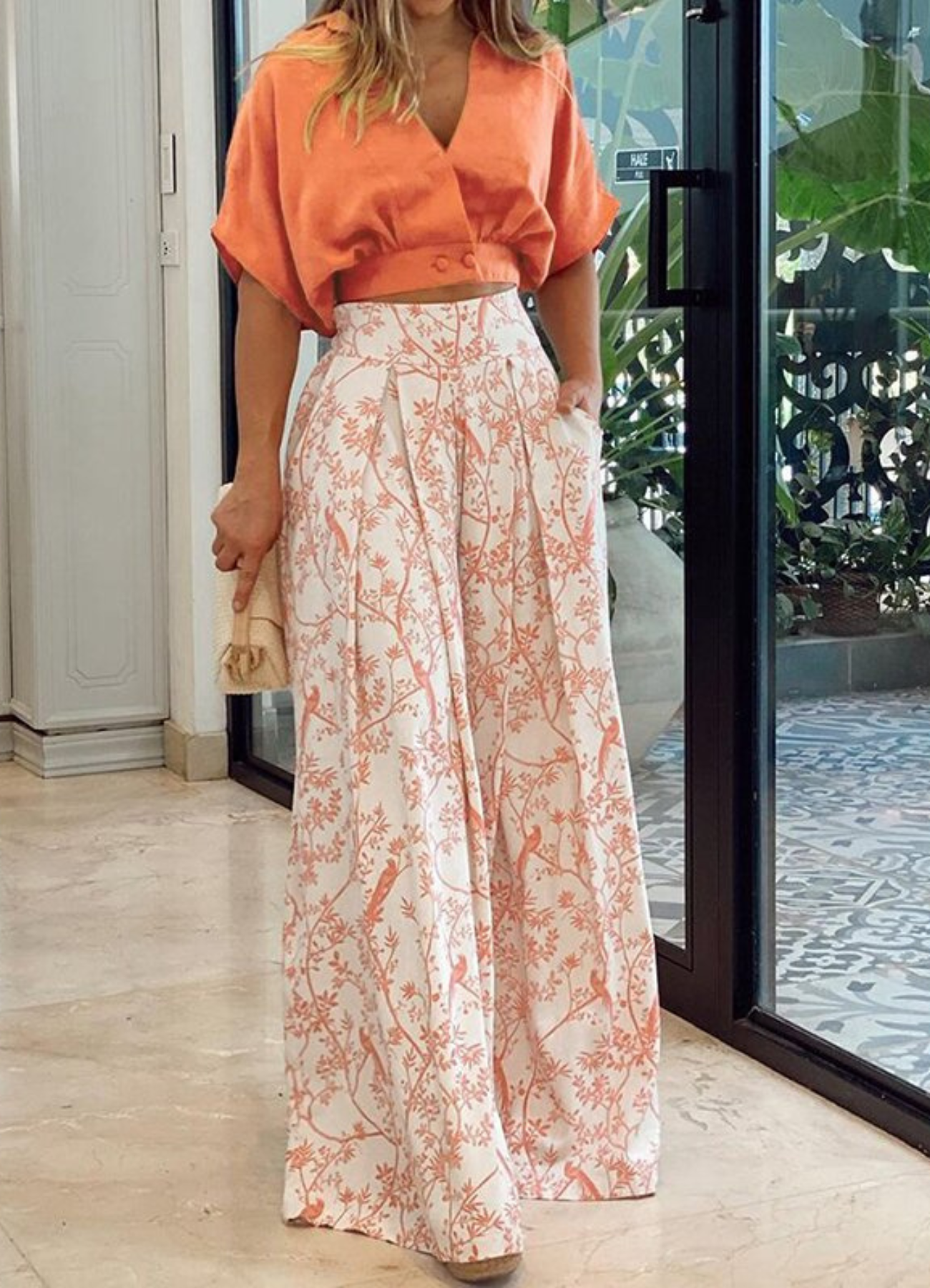 Affichez un look raffiné et élégant avec cet ensemble pour femme. Composé d'un crop top simple et d'un pantalon large à imprimé floral, cet ensemble est parfait pour les journées ensoleillées, les vacances ou les sorties décontractées. La coupe fluide et légère assure un confort optimal, tout en offrant une allure moderne et stylée.