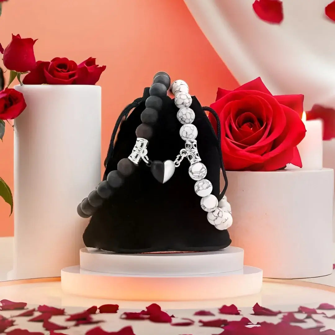 Découvrez les bracelets AMORE en howlite et onyx, un duo parfait pour symboliser l’amour et la connexion entre deux âmes. La pierre de howlite, réputée pour ses vertus apaisantes, aide à réduire le stress et à favoriser l’harmonie dans votre relation. Ces bracelets en howlite et onyx sont bien plus que de simples bijoux : ils incarnent un lien fort et durable entre vous et votre partenaire. Offrez ces bracelets en howlite comme un cadeau unique, chargé de sens et d’émotions. Avec leur design intemporel, les bracelets AMORE en howlite et onyx subliment chaque tenue tout en diffusant une énergie positive. Ce duo en howlite est idéal pour célébrer votre amour et renforcer votre connexion au quotidien.