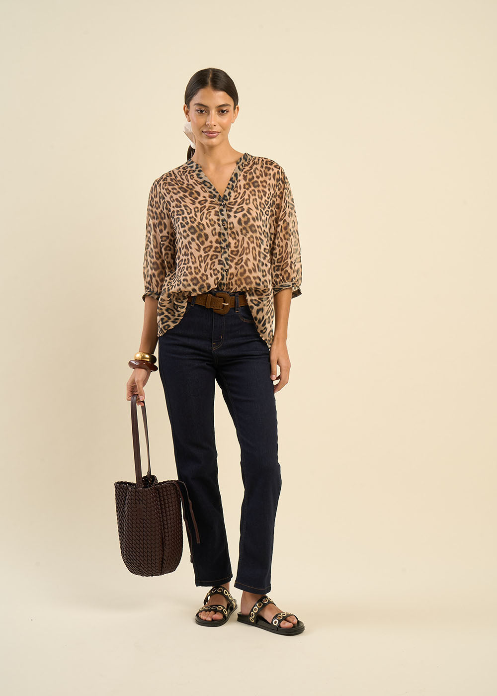 Le chemisier CLEOCE allie élégance et modernité avec son imprimé léopard et sa coupe fluide. Idéal pour un look chic et facile à associer.