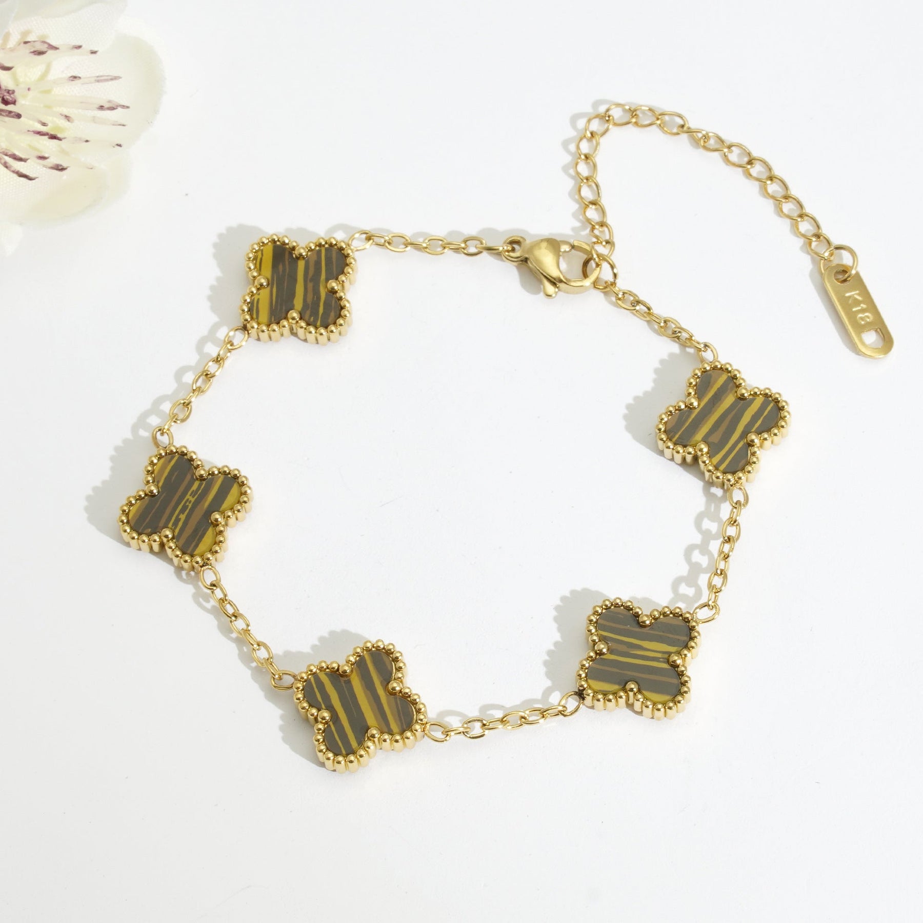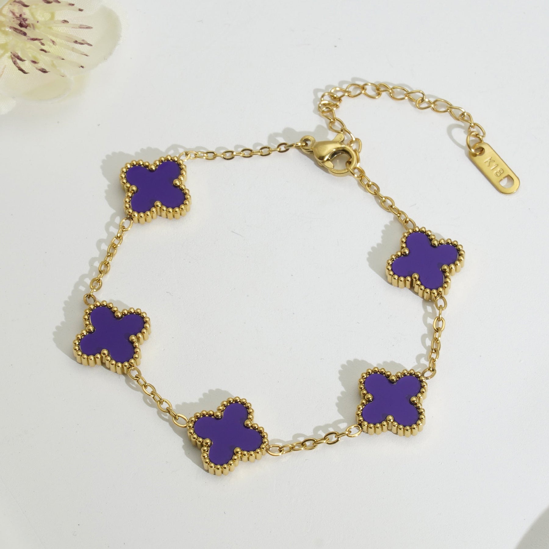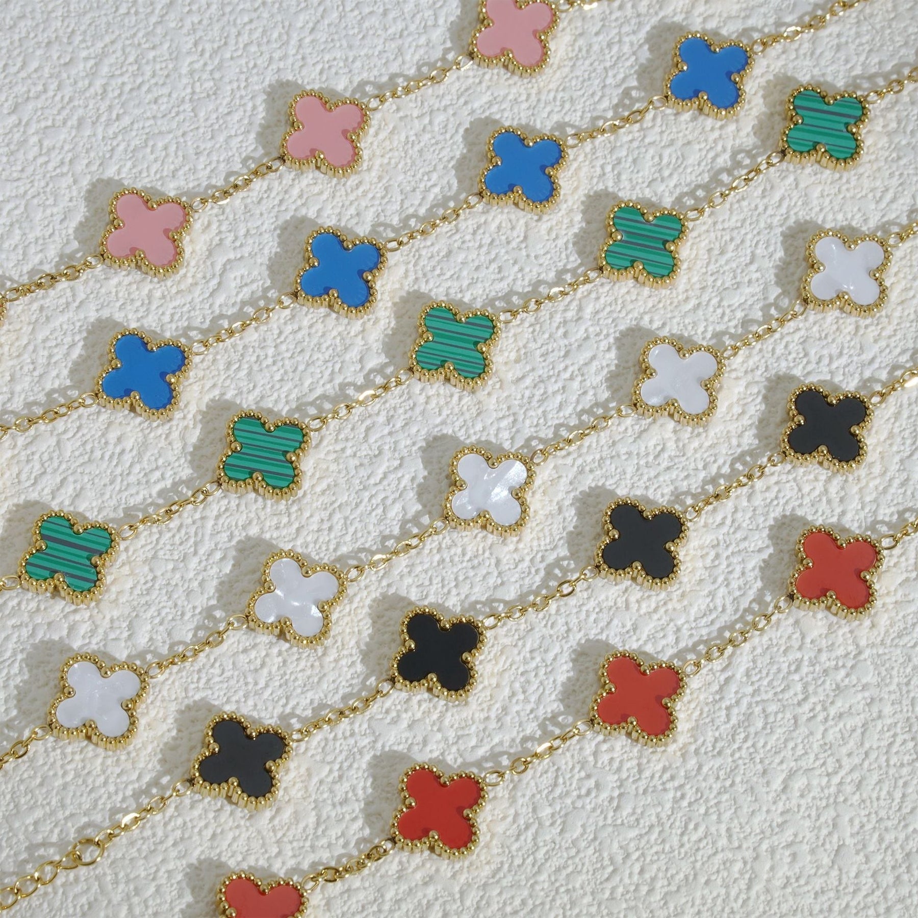 Ajoutez une touche d’élégance à votre poignet avec le bracelet Clé de Chance. Son design raffiné, inspiré des trèfles porte-bonheur, allie délicatement la couleur dorée et l’émail de différentes couleurs pour un rendu à la fois chic et intemporel. Parfait pour illuminer vos tenues du quotidien comme pour sublimer vos soirées.