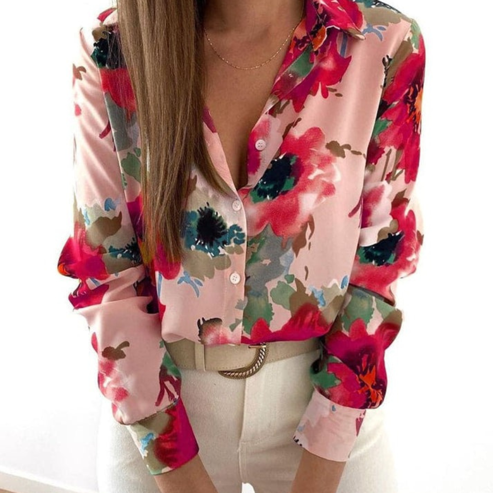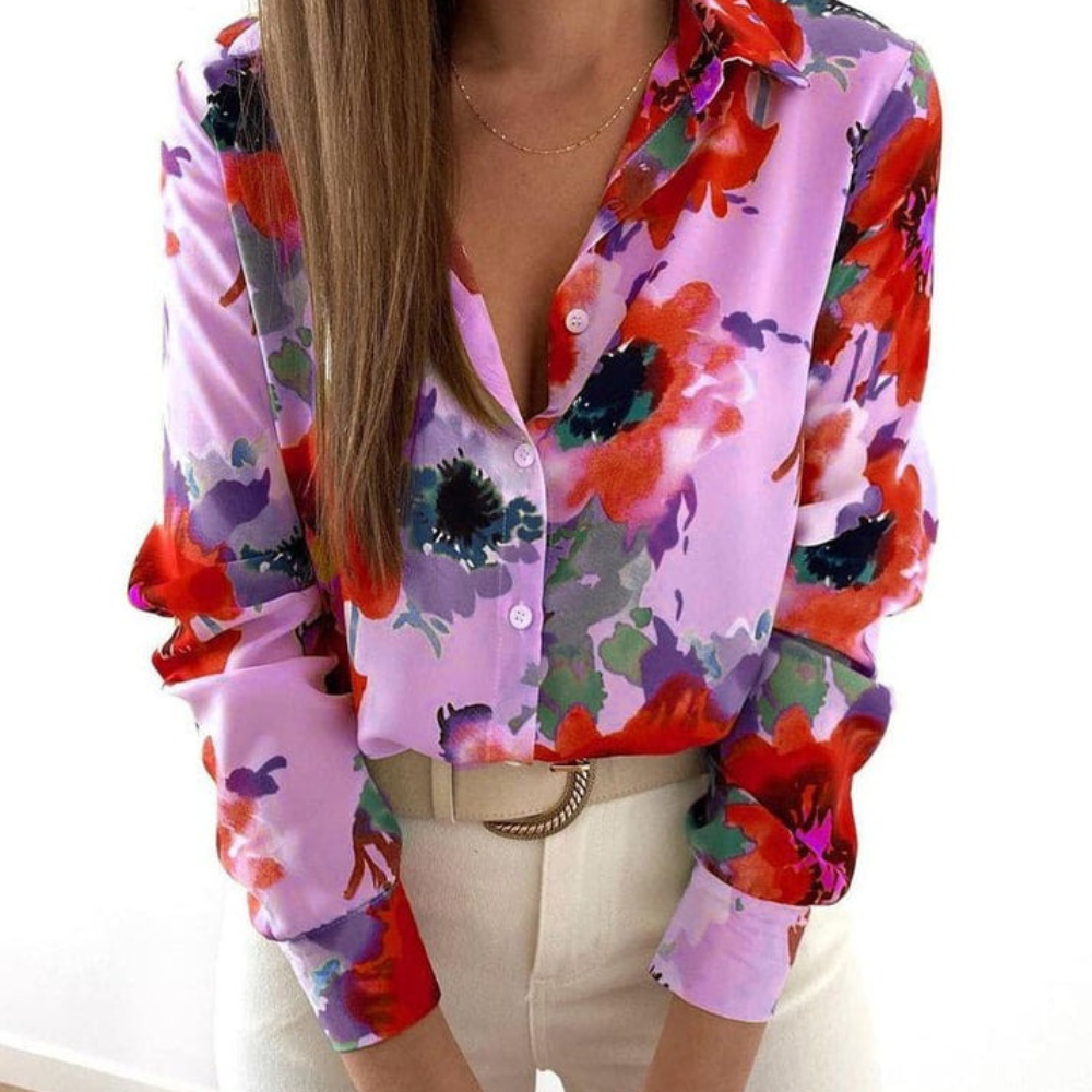 Crystal | Chemisier Élégante Florale Longues Pour Femmes | Longues Manches