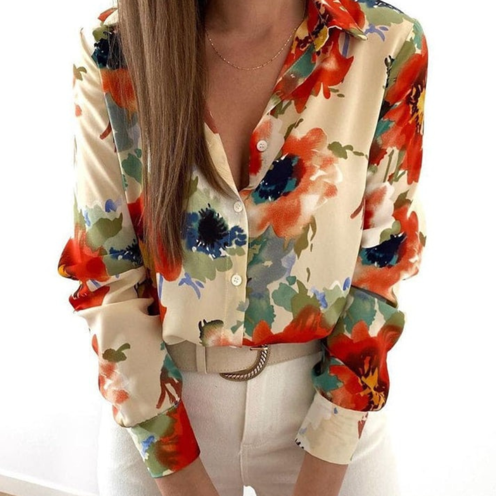 Ce chemisier élégant à manches longues et à motif floral apporte un charme raffiné à n'importe quelle tenue. L'imprimé délicat associé à des manches fluides ajoute une touche féminine parfaite pour le travail et le week-end. Léger, respirant et d'une élégance naturelle – c'est la pièce florale essentielle que votre garde-robe attendait.
