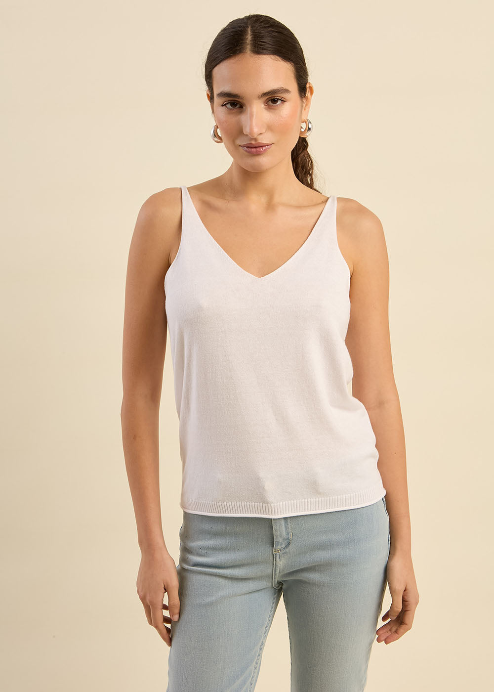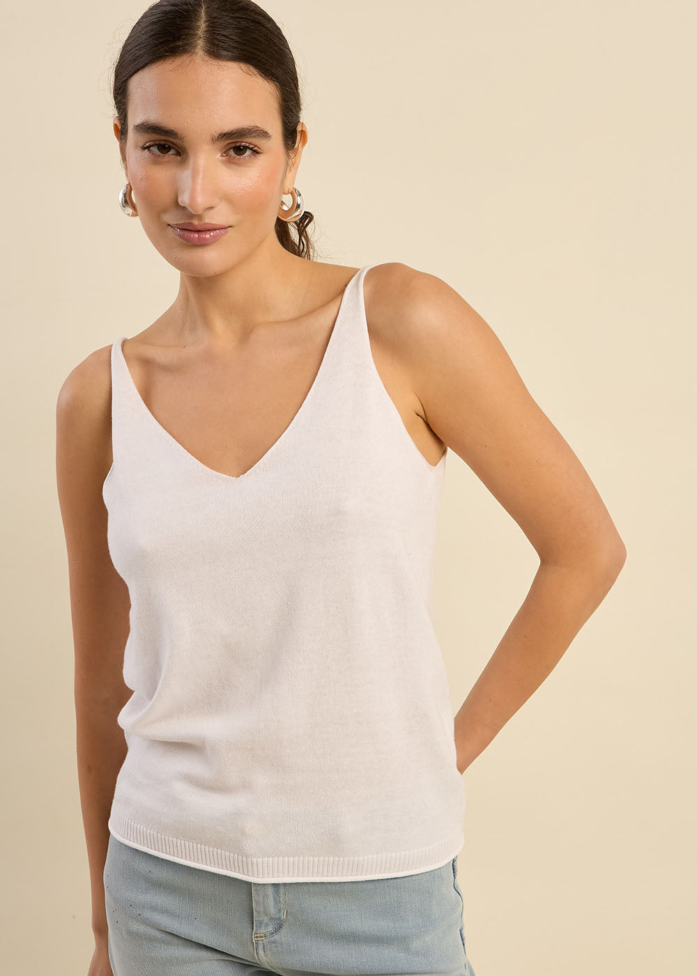 Le débardeur DEMYA est une pièce essentielle au design épuré, idéale pour une tenue à la fois chic et décontractée. Avec sa coupe fluide et son dos en V, il apporte une touche d'élégance minimaliste tout en assurant un confort optimal.