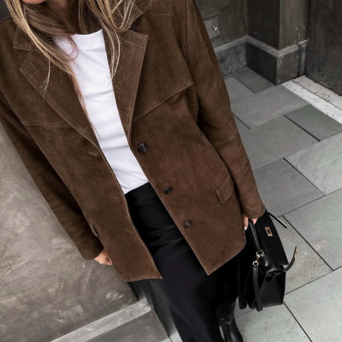 Ajoutez une touche de luxe à votre collection avec le Blazer Edith. Confectionné en daim de première qualité, ce blazer incarne l'élégance et le confort. Que vous vous habilliez pour une sortie décontractée ou un événement plus formel, le Blazer Edith sublime instantanément votre look.
