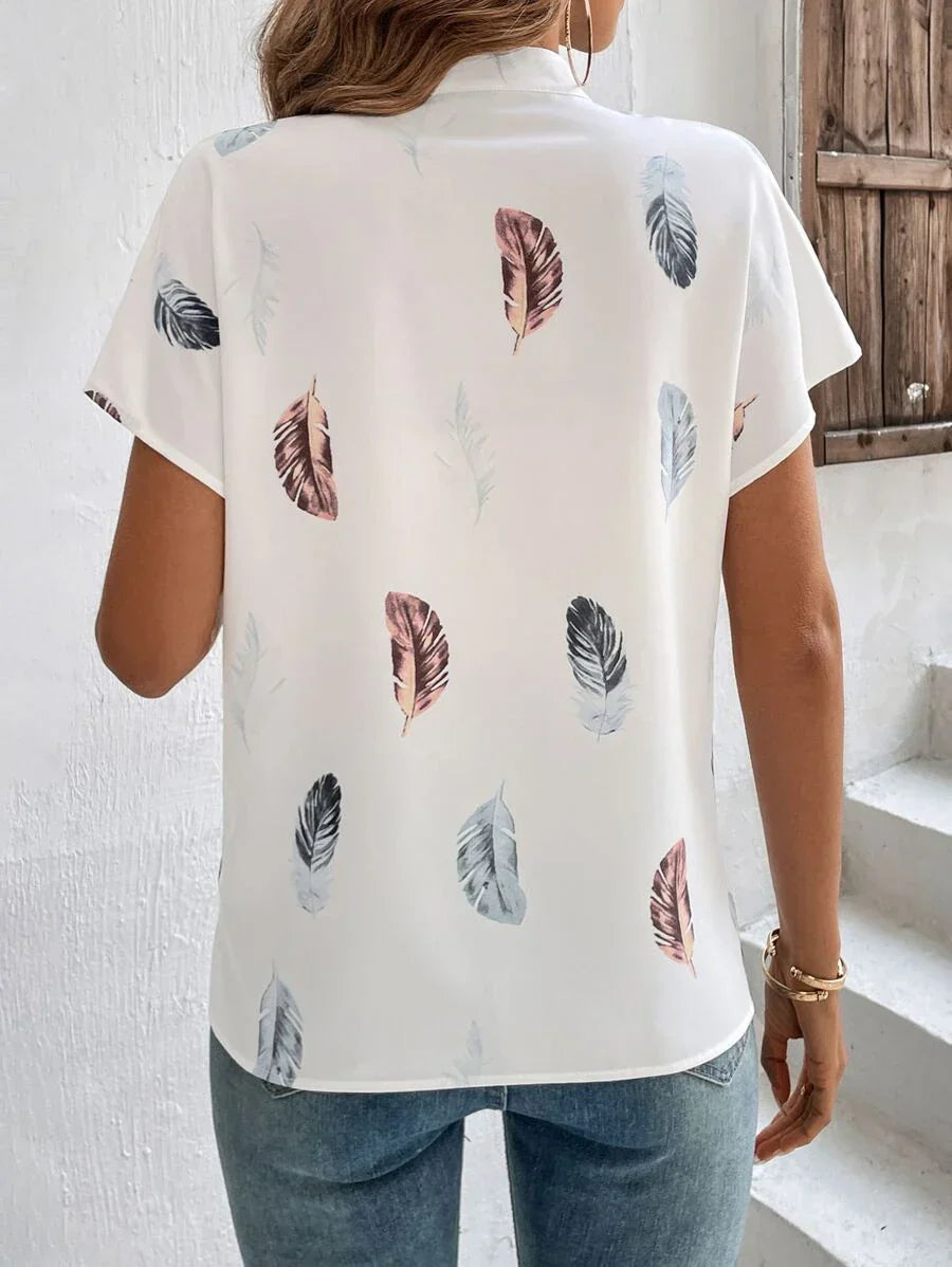 Avec son design orné de plumes, le top Geneviève apporte une touche audacieuse et sophistiquée à votre garde-robe. Sa coupe moderne à manches courtes en fait une pièce idéale pour se démarquer lors d’un événement ou d’une sortie stylée. Une fusion parfaite entre élégance et créativité.