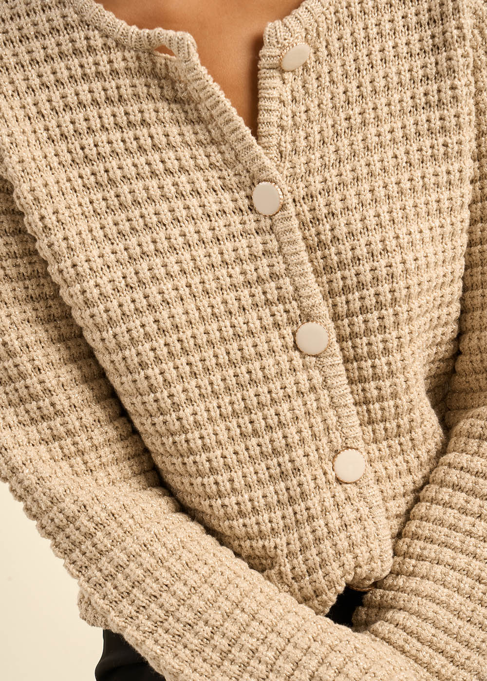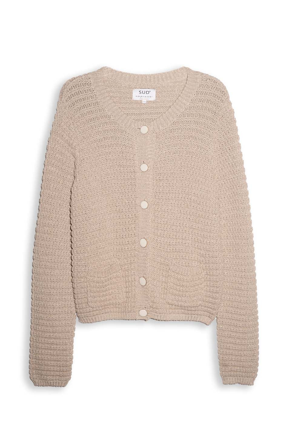 Le gilet GILARYX, un mélange parfait de confort et d'élégance. Son mélange de matières et son lurex doré en font une pièce idéale pour les fêtes. Son tricot rayé horizontal, associé à la brillance du lurex doré, crée un effet visuel saisissant. Parfait pour se créer un look festif et raffiné.