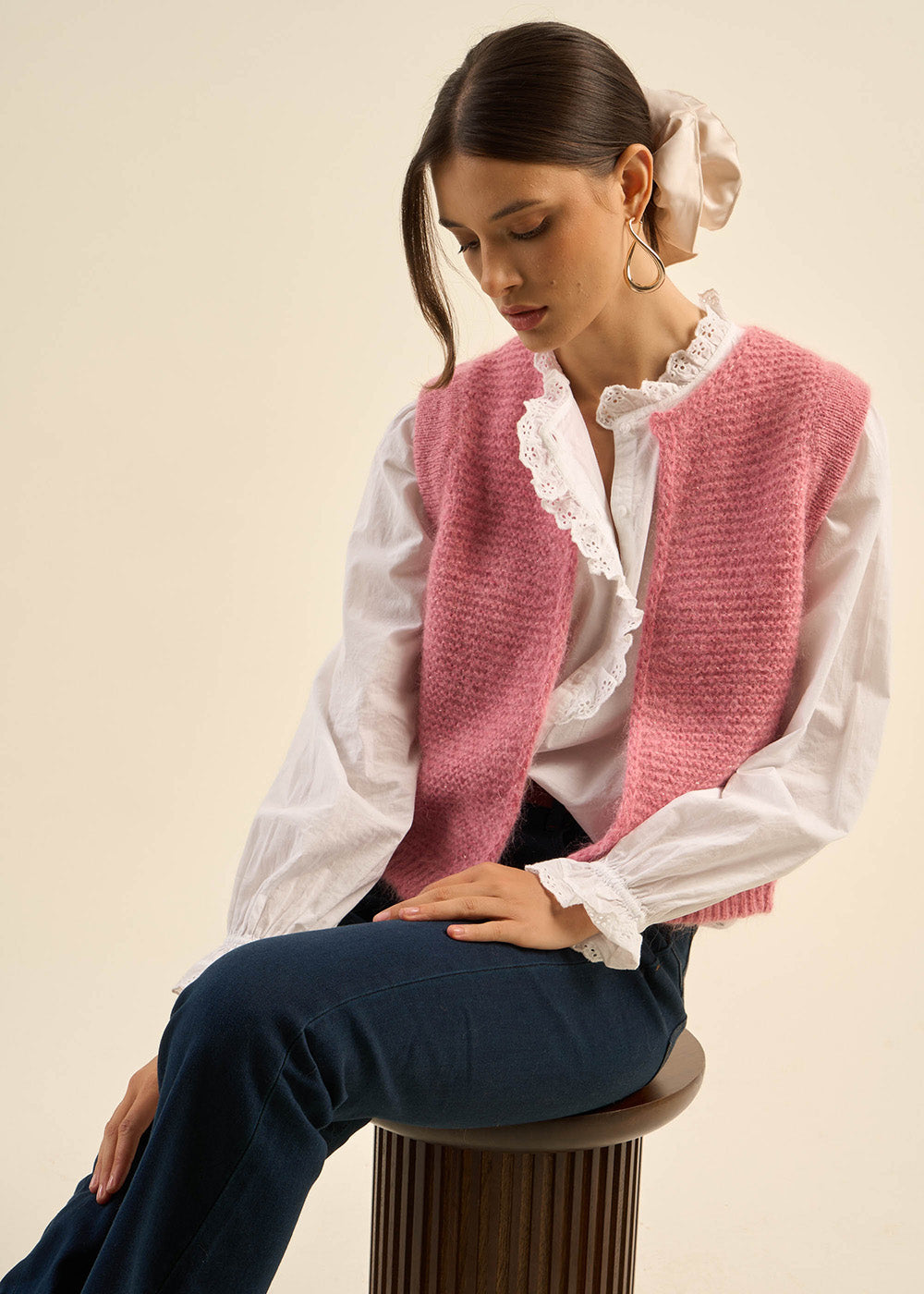 Le gilet GOTANAX se distingue par sa coupe courte et son mélange d'alpaga et de mohair, garantissant chaleur et douceur. Idéal pour être porté par-dessus une chemise.