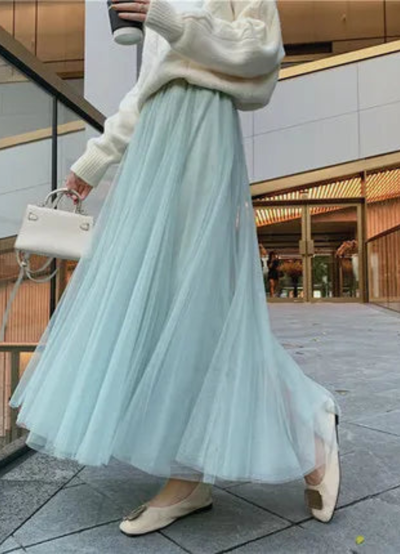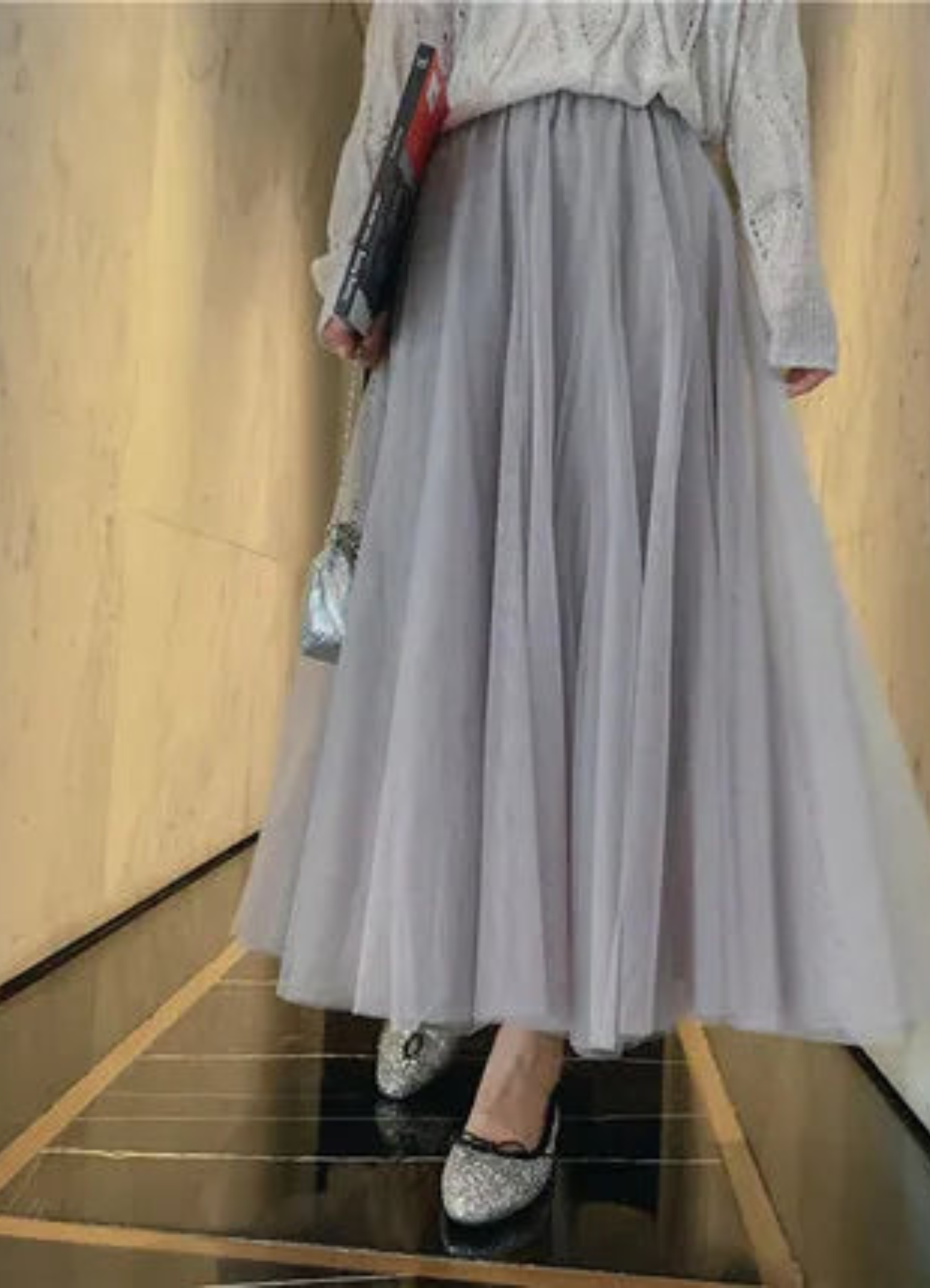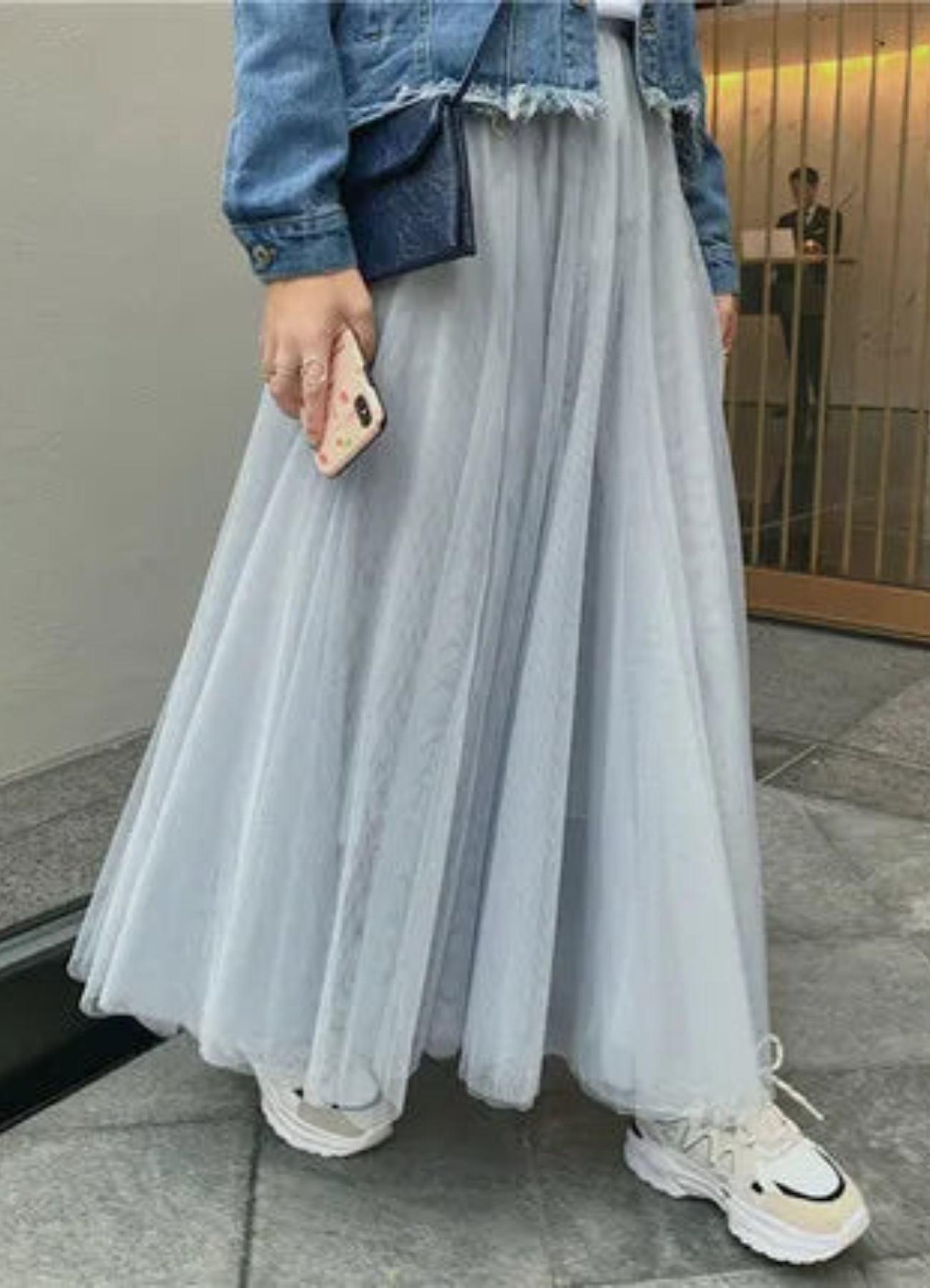 • Un look moderne : L’association de la jupe longue et du tulle crée un contraste unique entre l’élégance et le confort quotidien.