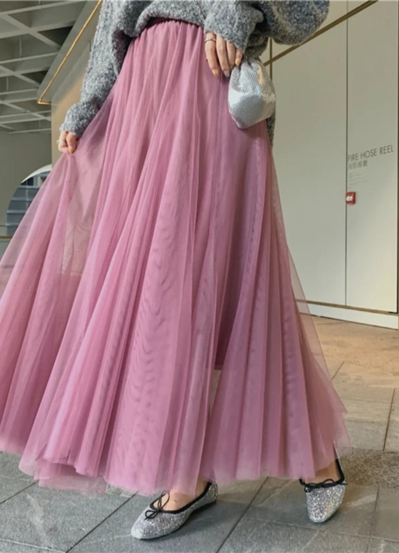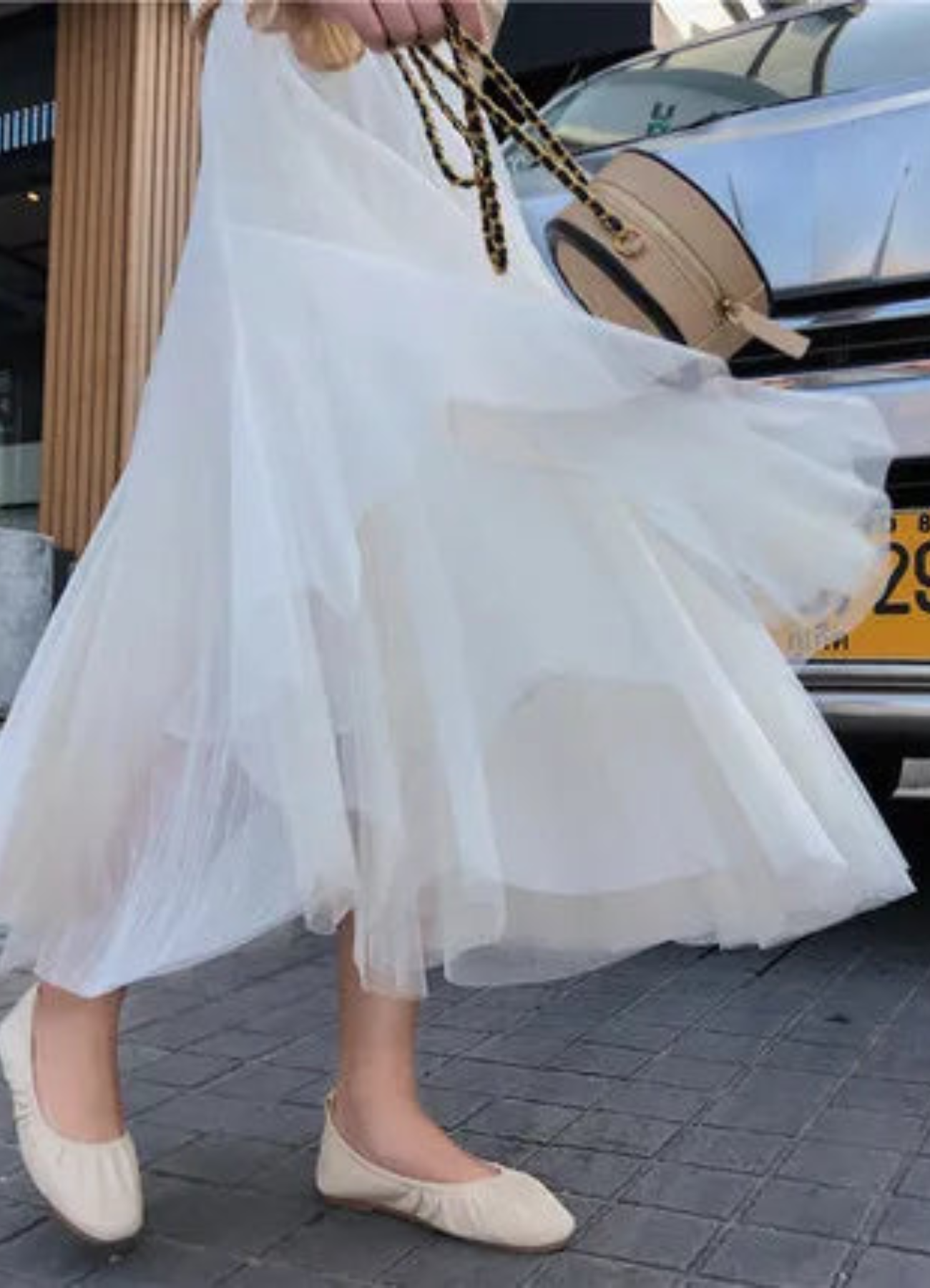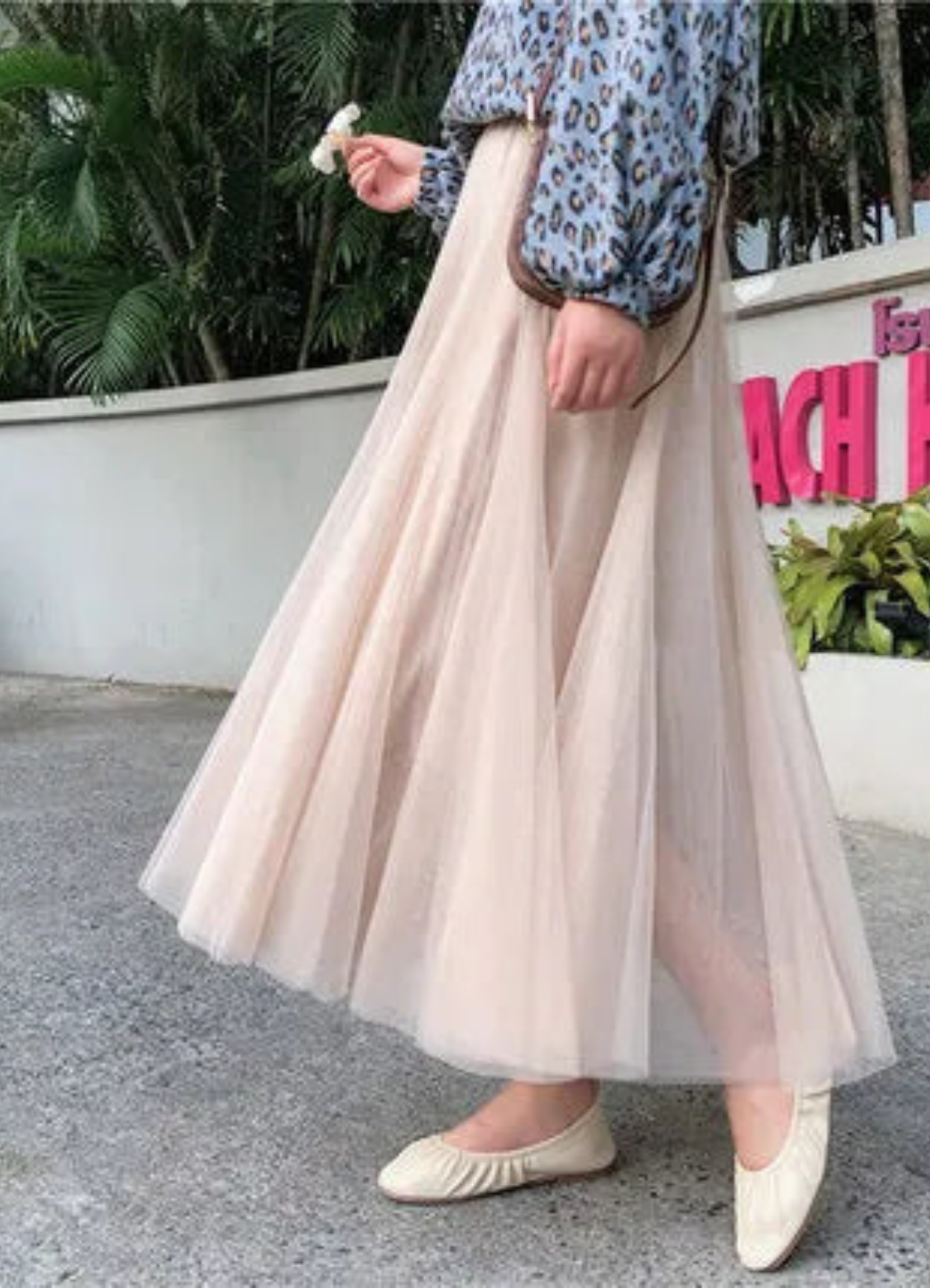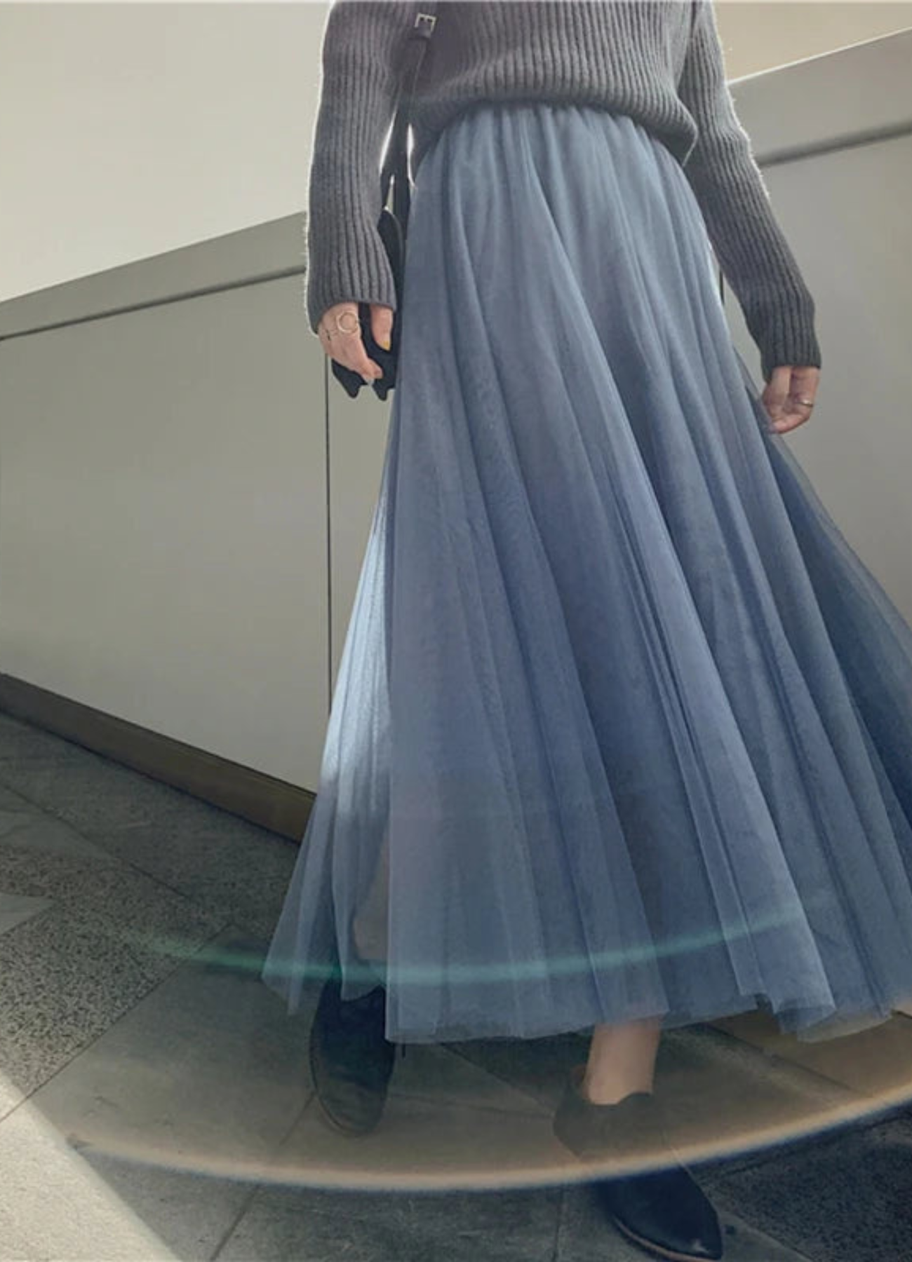 • Un look moderne : L’association de la jupe longue et du tulle crée un contraste unique entre l’élégance et le confort quotidien.