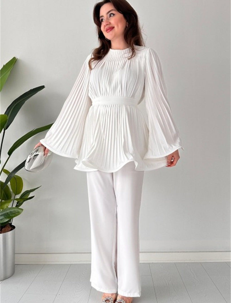 Avec ses manches évasées et sa silhouette fluide, cet ensemble est parfait pour vos moments de détente avec style. Profitez d'une sensation de bien-être et d'une allure raffinée en toute simplicité. Cet ensemble deviendra rapidement un incontournable de votre garde-robe de tous les jours.