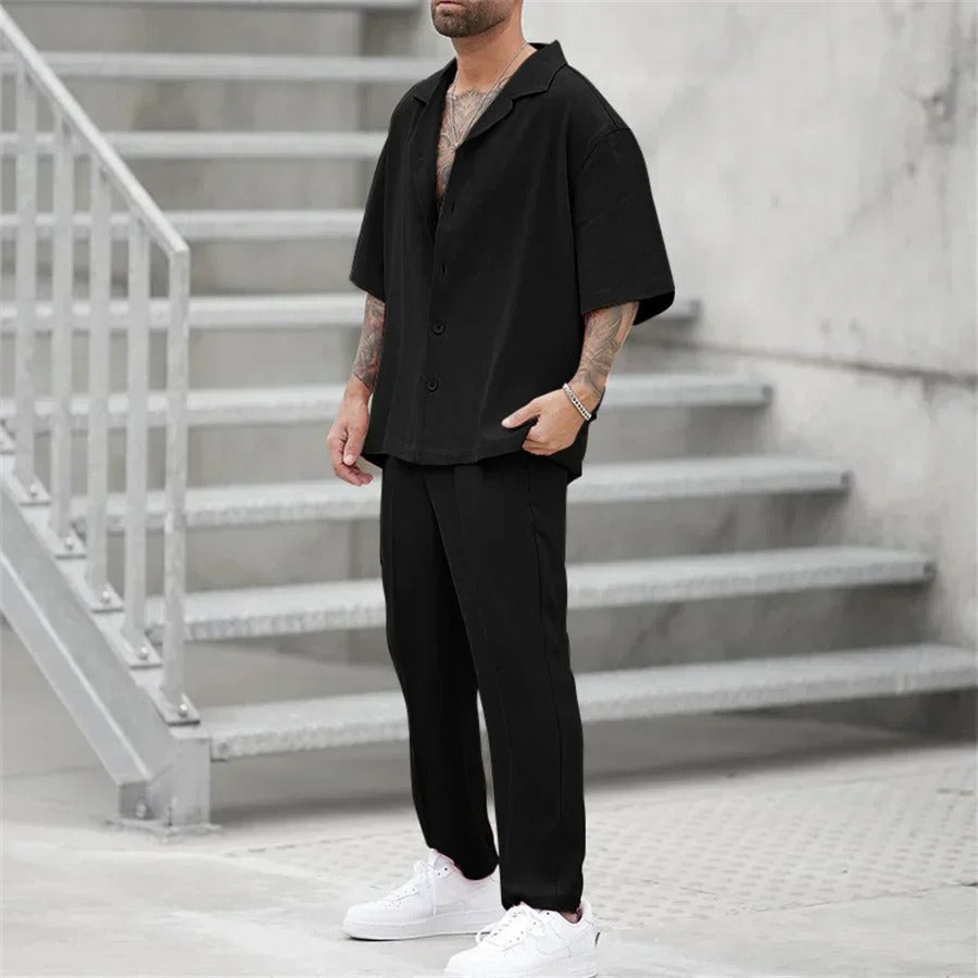 Le Justus Summer Set pour hommes allie sophistication et confort, conçu pour l'homme moderne qui apprécie à la fois le style et la facilité pendant les mois plus chauds. Fabriqué à partir d'un tissu léger et respirant, cet ensemble vous garantit de rester frais tout en affichant un look sans effort et élégant.