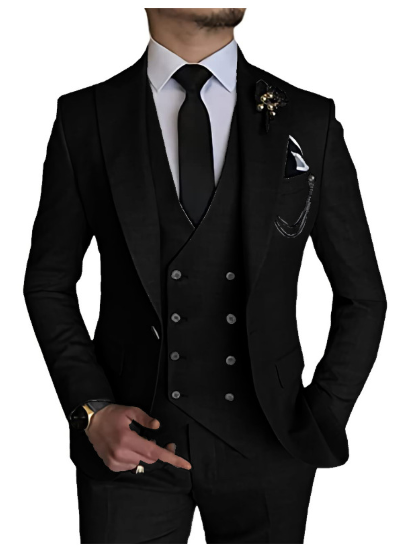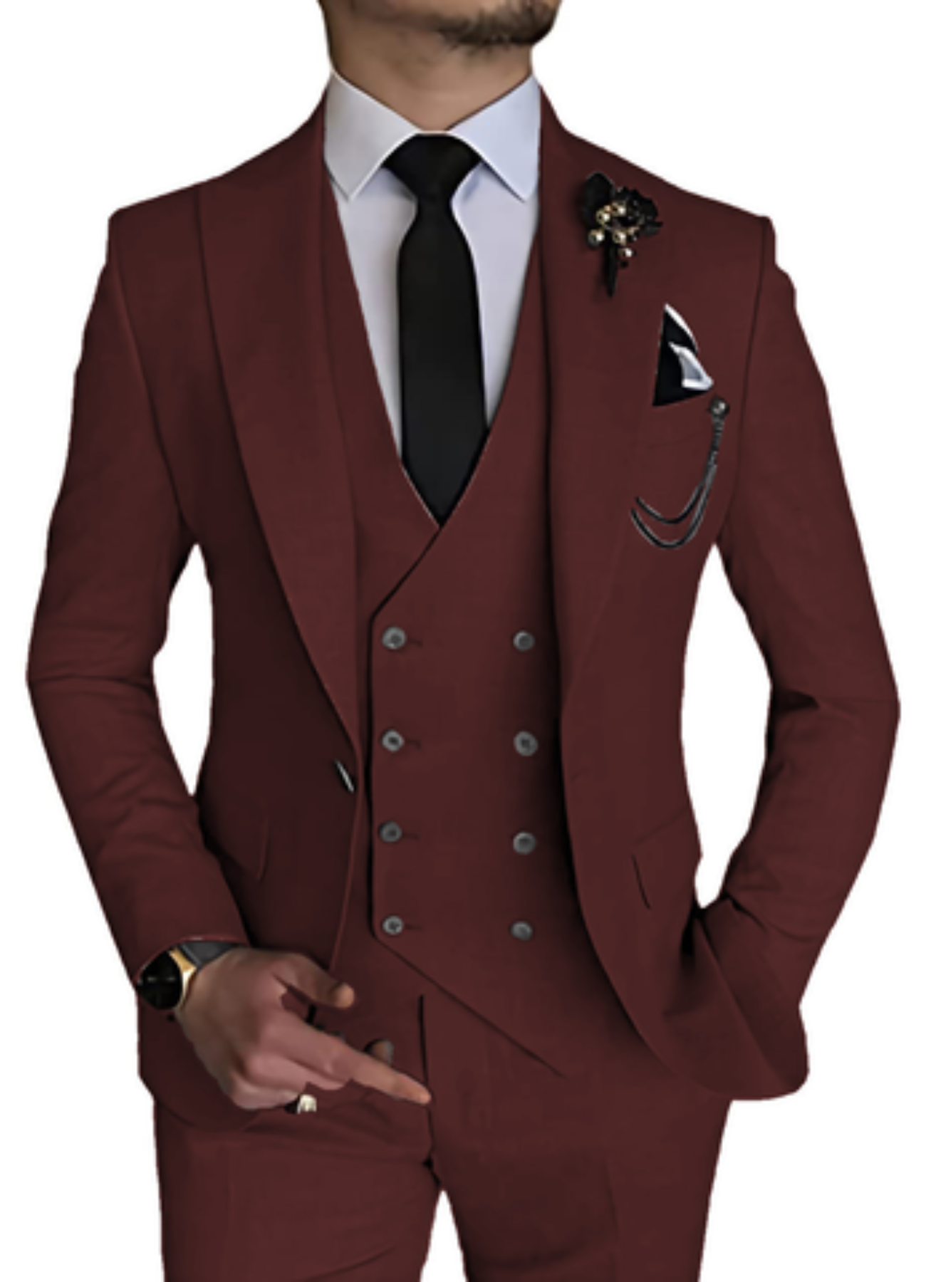 Ce costume pour homme est la définition même de l'élégance et du raffinement. Conçu pour les occasions spéciales, les mariages, ou toute cérémonie formelle, il offre une silhouette parfaite et un style impeccable. Sa coupe moderne et ses détails sophistiqués, comme le gilet ajusté et la boutonnière décorative, font de ce costume un choix incontournable pour un look élégant et intemporel.