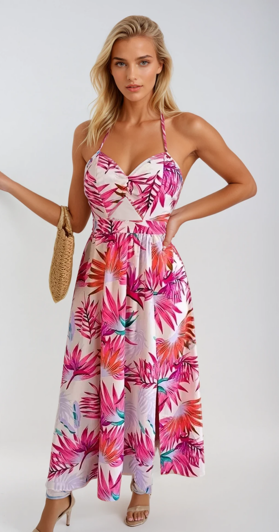 Plongez dans l'essence d'un été vibrant avec Maëlle, la robe Botanical Bliss dos nu avec découpes et fente qui allie audace et légèreté. Conçue pour capturer tous les regards, cette pièce fluide et aérée vous assure un confort optimal même pendant les journées les plus chaudes. Idéale pour une garden-party, un événement en soirée ou des vacances tropicales, Maëlle incarne l'élégance sans effort.