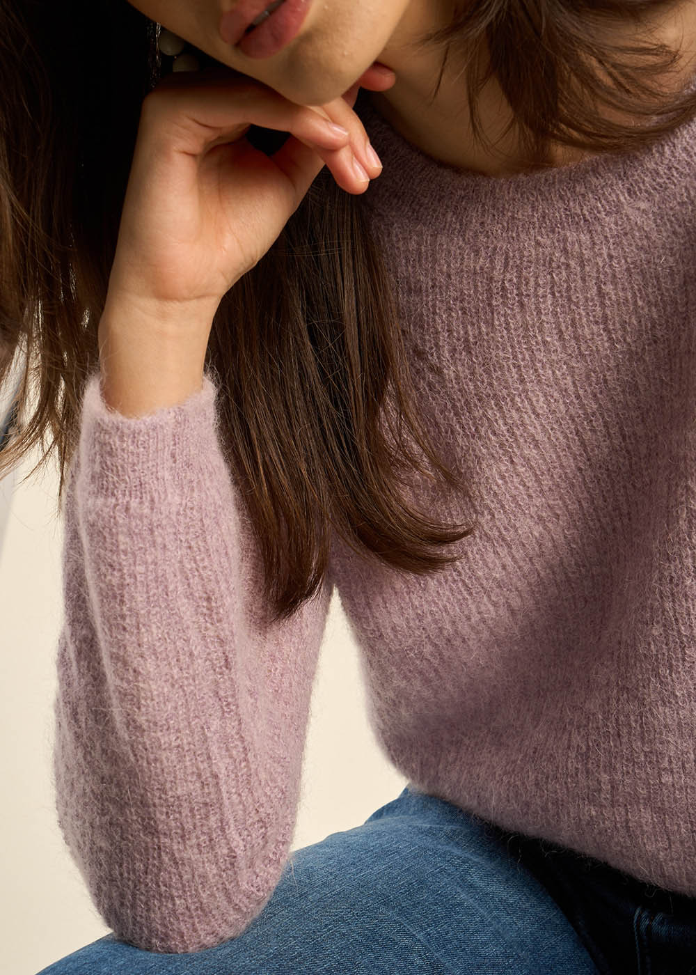 Pull col rond à détails tricotés