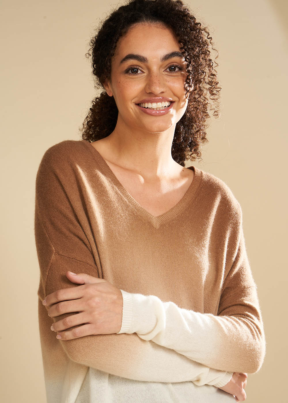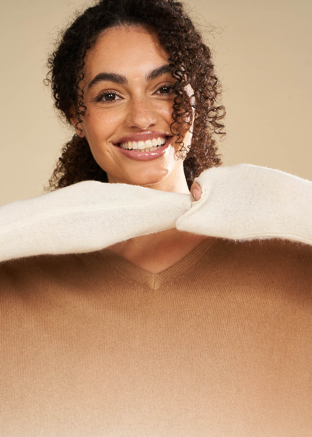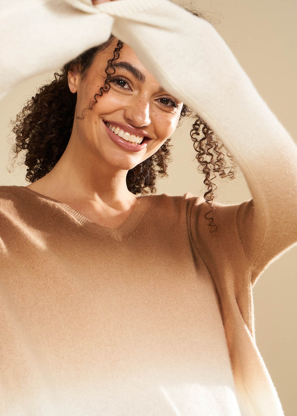 Le pull MONJACK est une pièce unique qui se démarque par son imprimé tie-dye audacieux. Avec son col V et ses manches longues il incarne une fusion parfaite entre style décontracté et tendance. Sa matière 100% cachemire promet douceur et qualité.