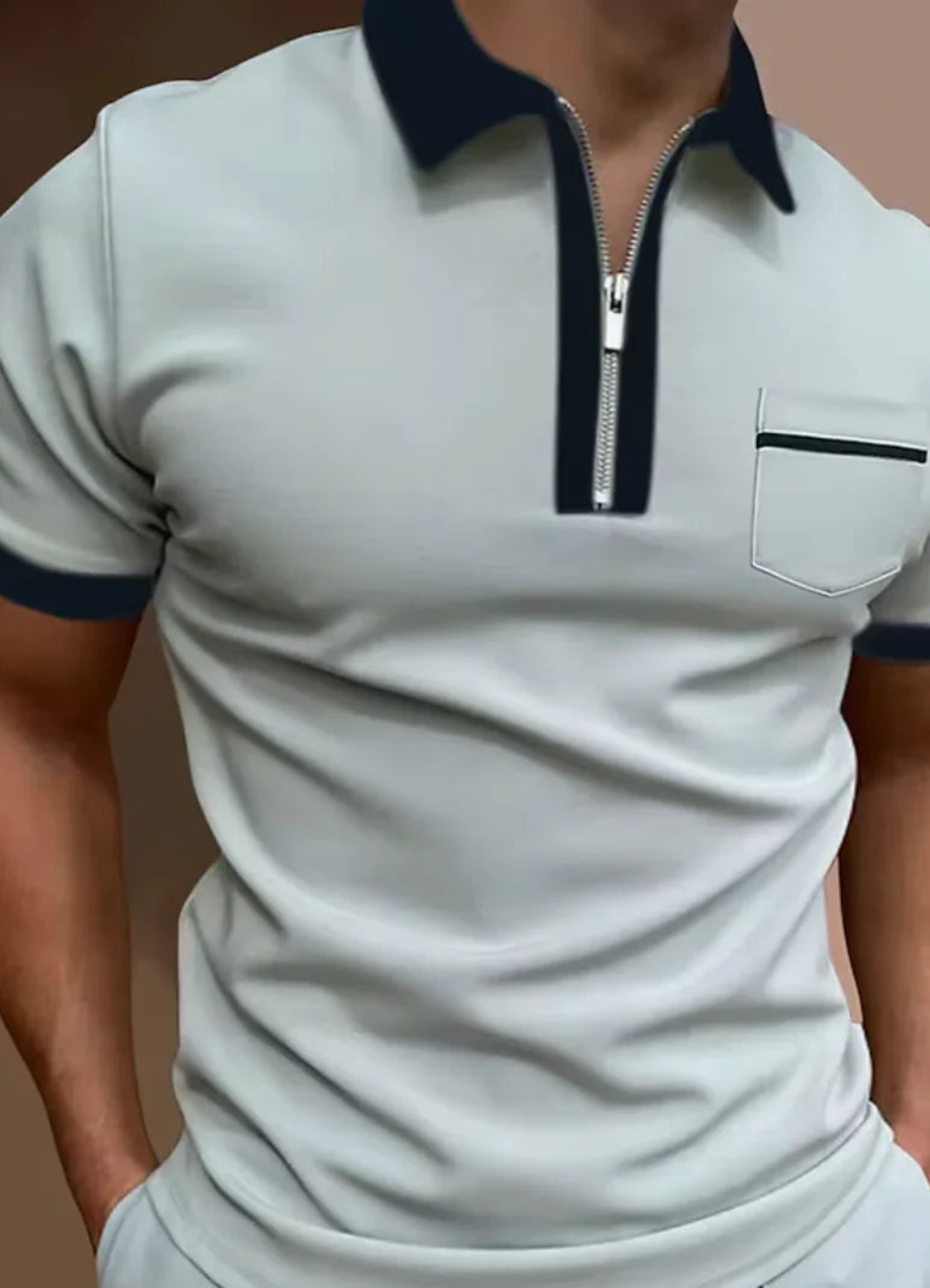 Affichez un style moderne et sportif avec ce t-shirt pour homme. Son col zippé et ses détails soignés, comme la petite poche à la poitrine, apportent une touche unique à ce modèle classique. Conçu pour ceux qui cherchent à allier confort et style, ce t-shirt est parfait pour des moments de loisirs, des sorties décontractées ou même pour vos activités sportives.