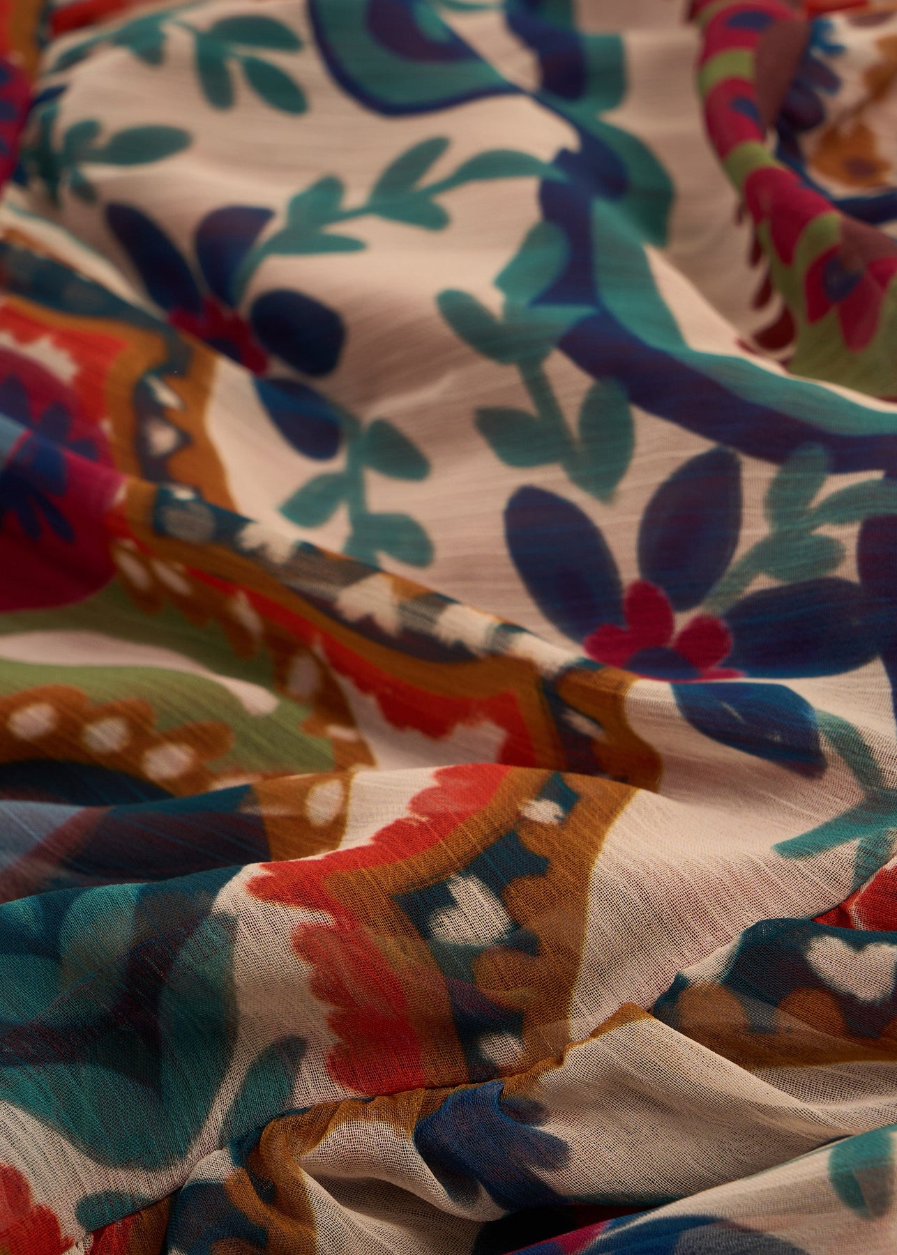Laissez-vous envoûter par le charme de notre robe RALORENCE, imprimée aux motifs cachemire. Son col en V sublime le décolleté, tandis que ses manches courtes en forme de papillon apportent une touche légère et élégante. Confectionnée dans une matière douce et fluide, elle garantit un confort optimal. Le volant au bas de la robe crée du mouvement et de la féminité, tandis que sa coupe droite offre une silhouette moderne et fluide.