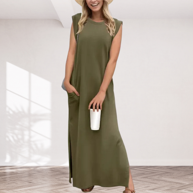 Robe longue d'été – Taille haute & sans manches