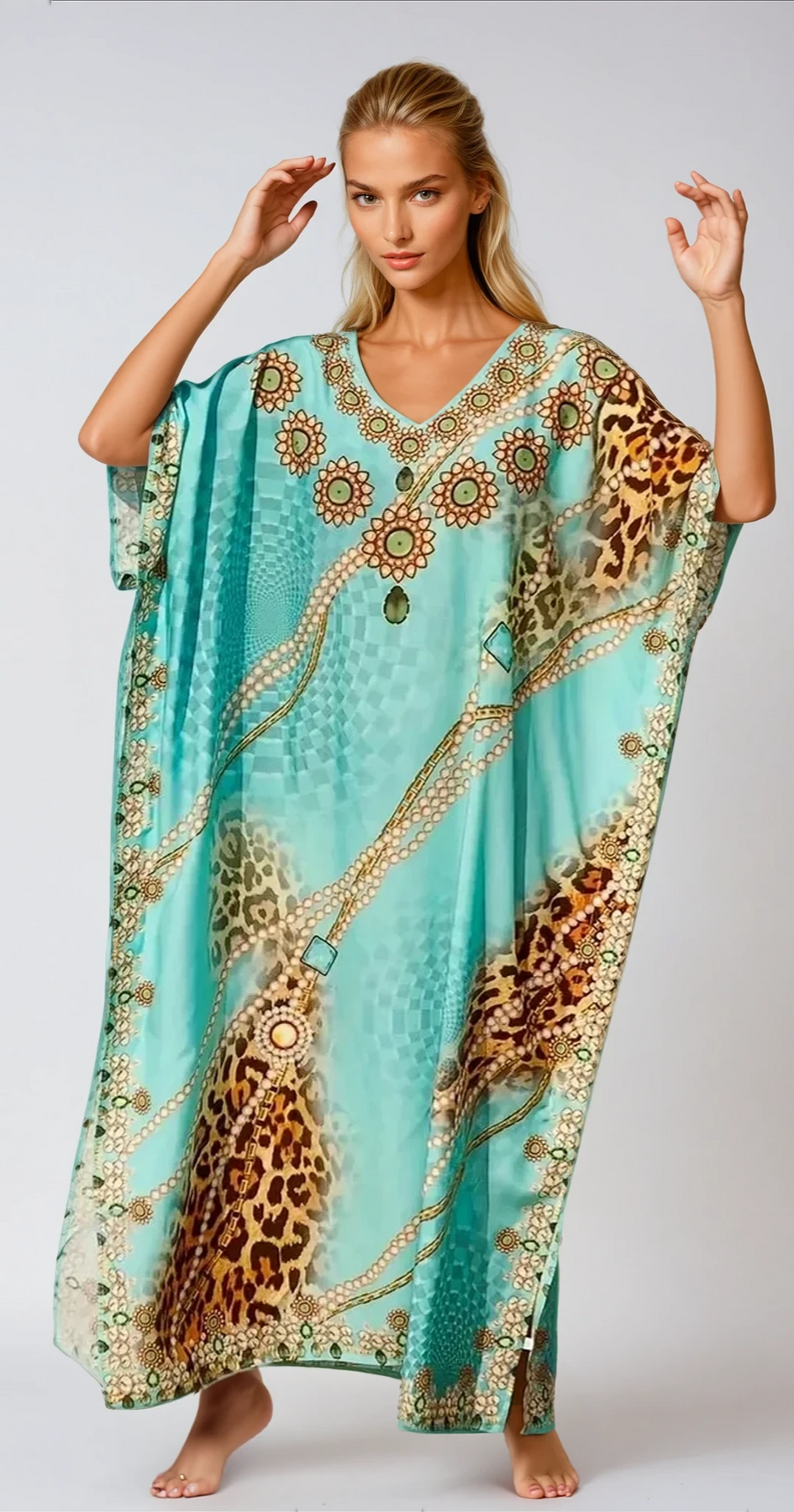Adoptez un style affirmé et fluide avec Rose, la robe maxi qui marie avec audace l’imprimé léopard à des touches florales délicates. Conçue pour vous accompagner lors de vos journées ensoleillées ou escapades décontractées, cette robe au design boho-chic vous assure un look remarquable tout en garantissant un confort exceptionnel grâce à sa matière légère et respirante.