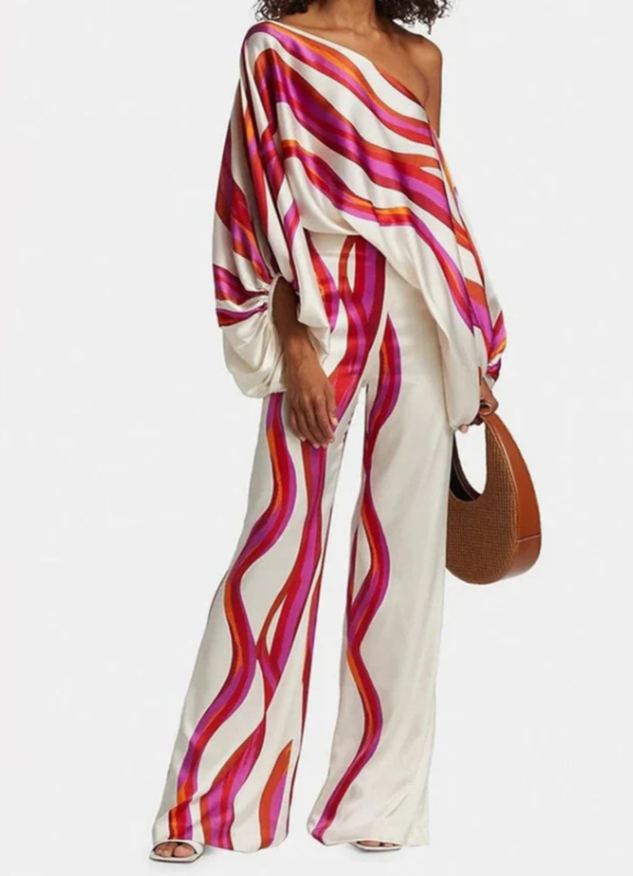 Cette combinaison pour femme, avec son design une épaule et ses vagues de couleurs vives, est le choix parfait pour un look et contemporain. Le tissu fluide et la coupe ample garantissent confort et élégance, tandis que les motifs ondulés ajoutent une touche de fraîcheur et de dynamisme. Parfaite pour une soirée estivale ou un événement spécial, cette combinaison saura faire tourner les têtes.