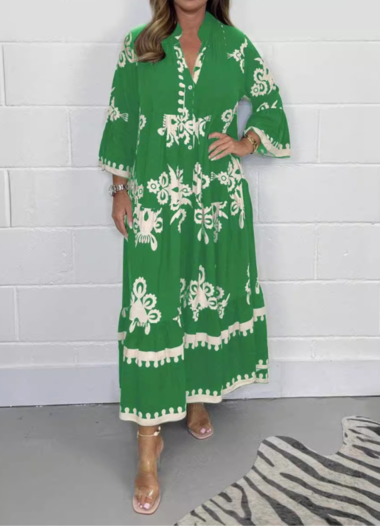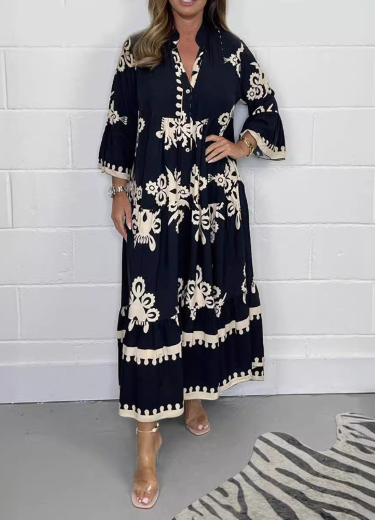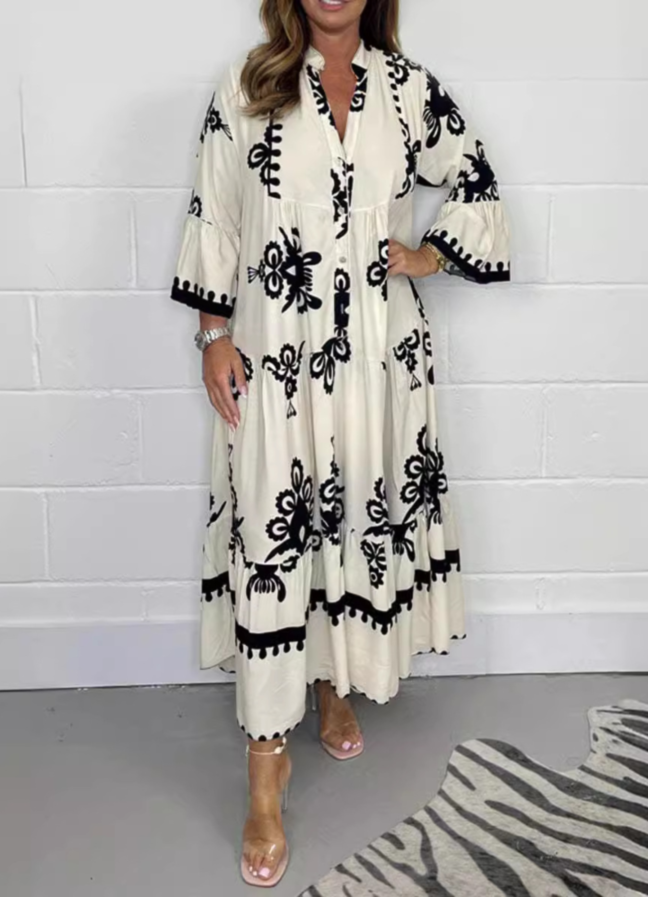 • Design élégant : Avec ses motifs délicats et sa coupe fluide, cette robe offre un look chic tout en étant confortable.