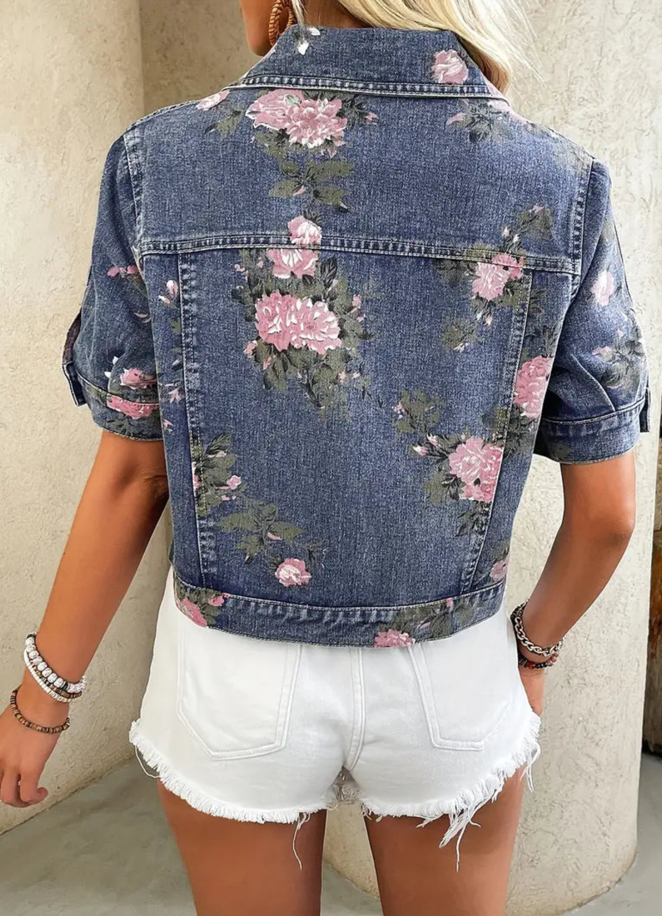Cette veste pour femme se distingue par son design moderne et sa coupe taillée, idéale pour les journées ensoleillées. Les manches courtes et le motif floral vibrant ajoutent une touche de fraîcheur et de gaieté, tandis que les poches fonctionnelles et les boutons pratiques combinent style et utilité.