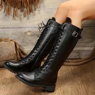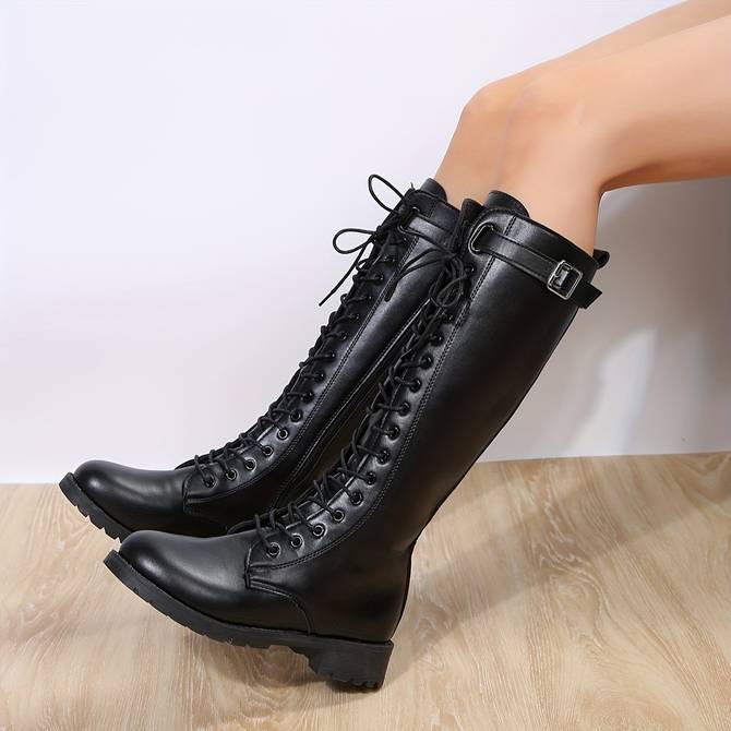 Amélie - Bottes Noires à Lacets et Boucle Argentée