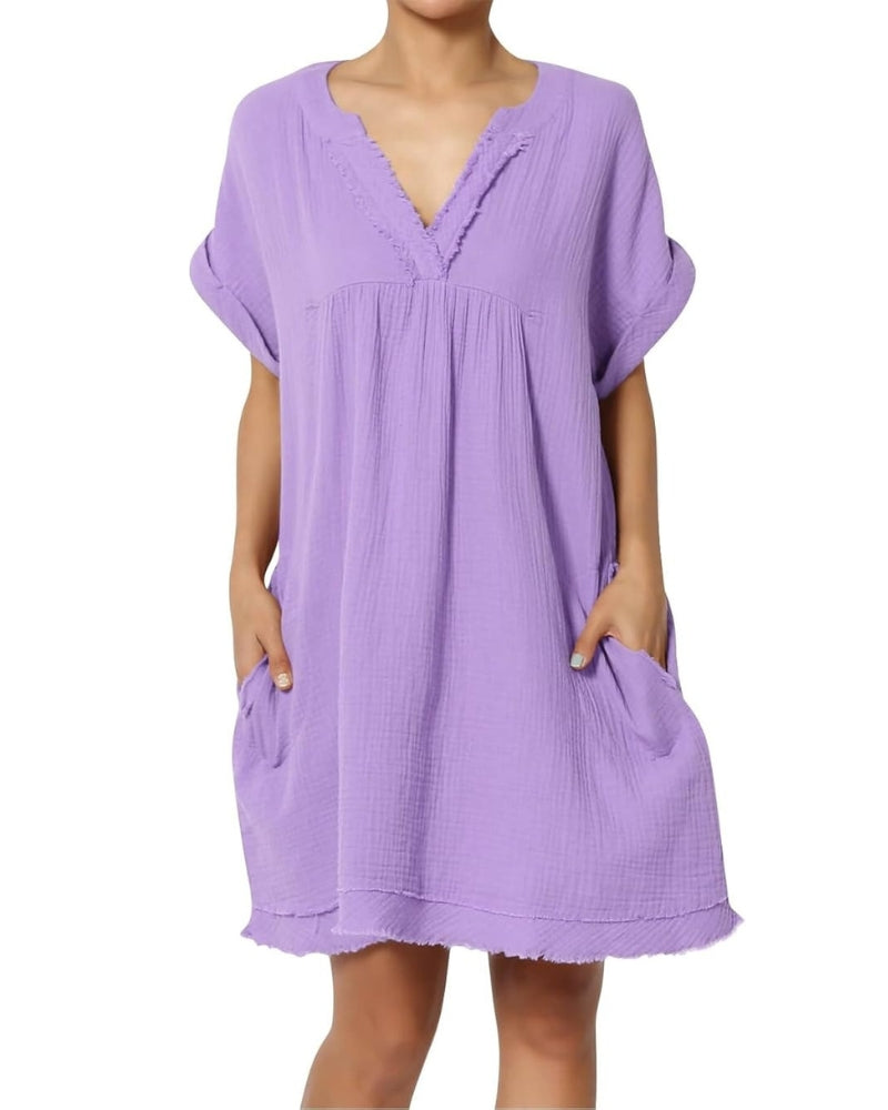 Une pièce décontractée et stylée conçue pour vous garder fraîche et élégante toute la journée. Avec sa texture froissée douce, sa silhouette aérée et sa teinte joyeuse, cette robe offre un parfait équilibre entre confort et sophistication décontractée. Que ce soit pour faire des courses, retrouver des amis autour d’un café ou partir en escapade en bord de mer, elle est votre alliée idéale pour un style polyvalent et sans effort.