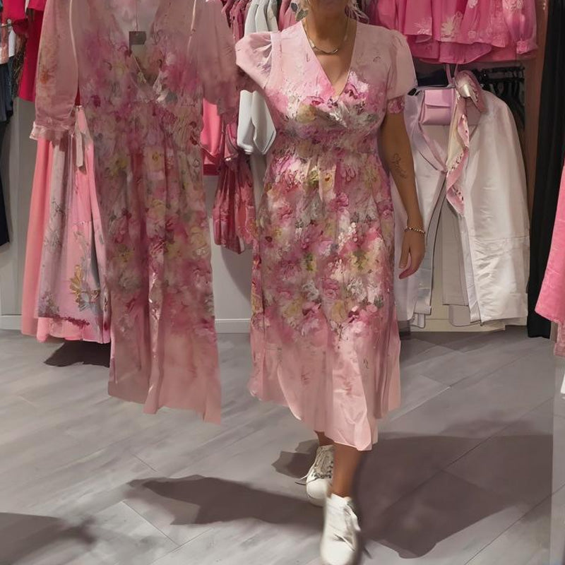 Astrid| Robe longue élégante pour femme avec imprimé floral et décolleté en V