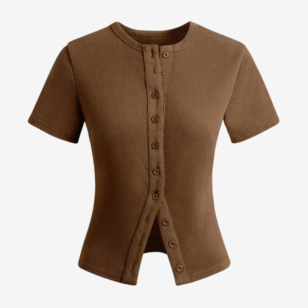 Ava™ est une version moderne du t-shirt classique à manches courtes, avec une fermeture boutonnée sur le devant qui lui confère une touche raffinée. Sa coupe ajustée flatte la silhouette tout en offrant confort et polyvalence, ce qui en fait une pièce idéale à superposer ou à porter seule. Confectionné dans un tissu doux et respirant, Ava™ est conçu pour un usage quotidien, alliant simplicité et sophistication.