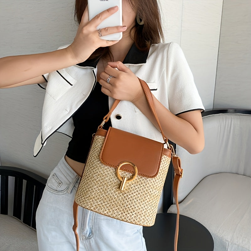 Ce sac à main chic allie le charme naturel de la paille à un look moderne et élégant. Le sac a un design sophistiqué avec une fermeture sécurisée et un anneau doré frappant, qui crée un look luxueux et sophistiqué. Qu'il s'agisse d'une journée décontractée ou d'une occasion spéciale, ce sac ajoutera une touche de classe à votre look. Commandez votre modèle préféré dès aujourd'hui chez Mowa-Mode !