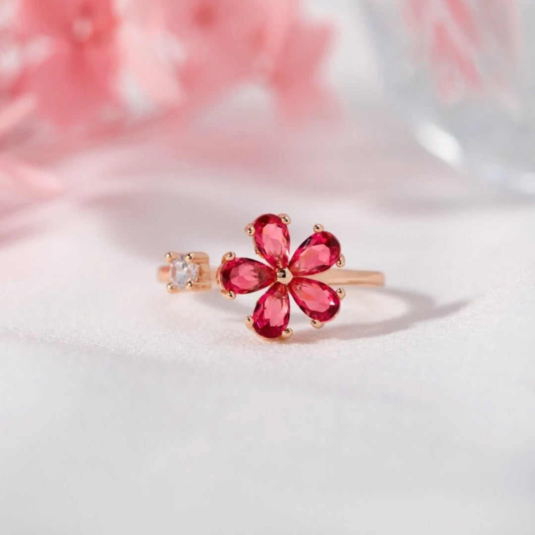 Bague Ajustable à Pétales de Zirconium en Or