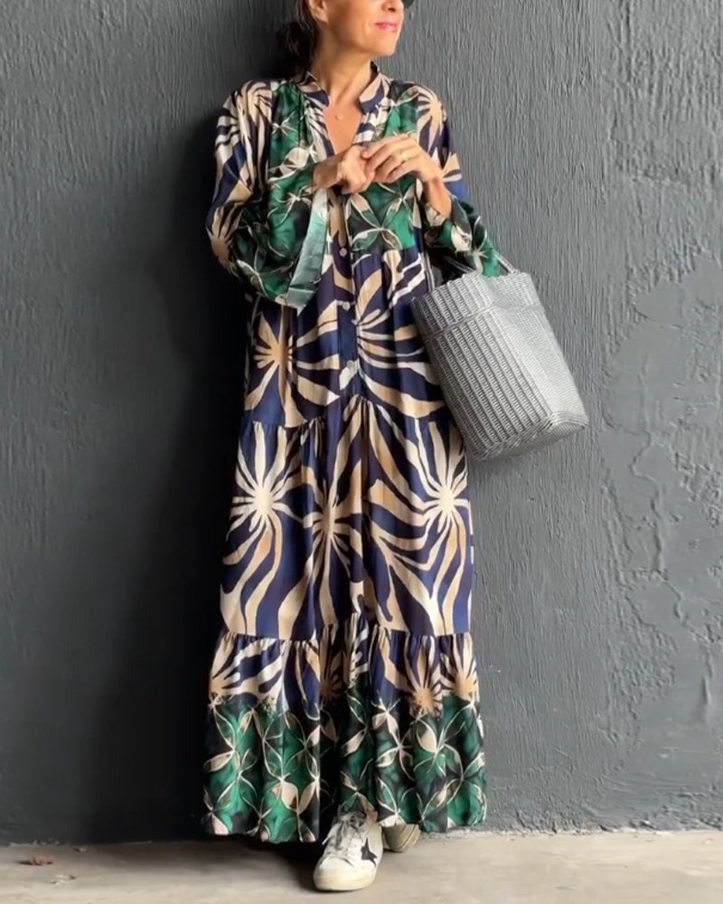 Cette robe longue à imprimé décontracté est une invitation à la détente chic. Avec son décolleté en V et sa coupe fluide, elle accompagne vos escapades ensoleillées avec une grâce naturelle et un confort absolu.