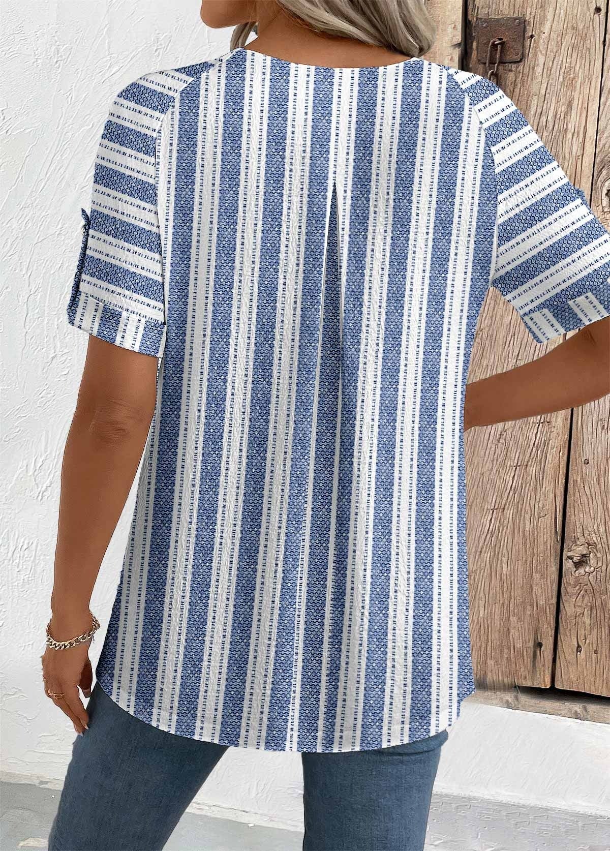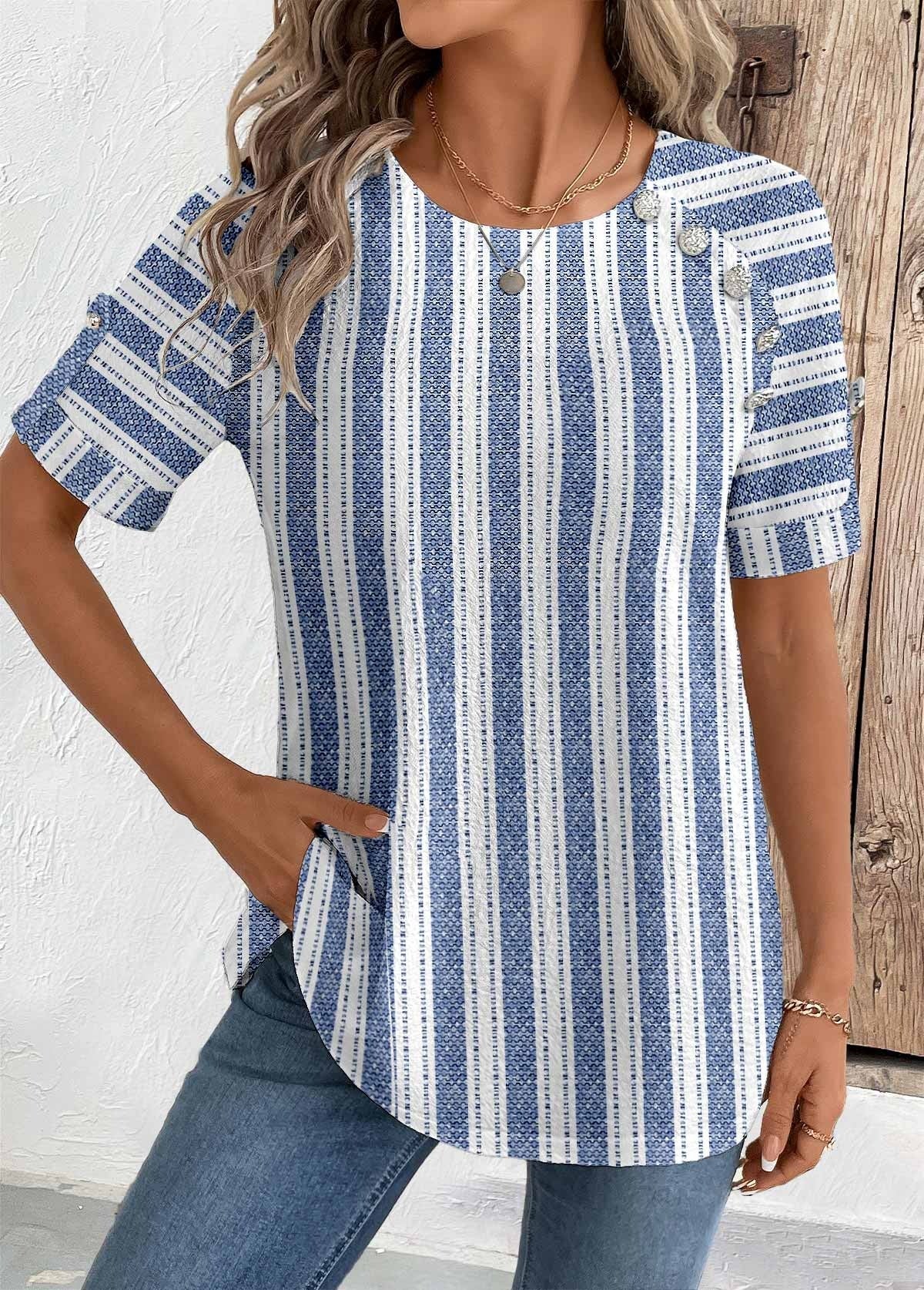 T-shirt bleu à manches courtes et col rond