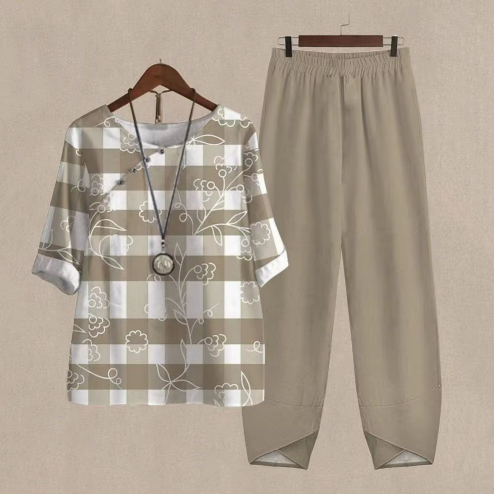 Tatum | Ensemble T-shirt en coton doux et pantalon à coupe décontractée pour femme