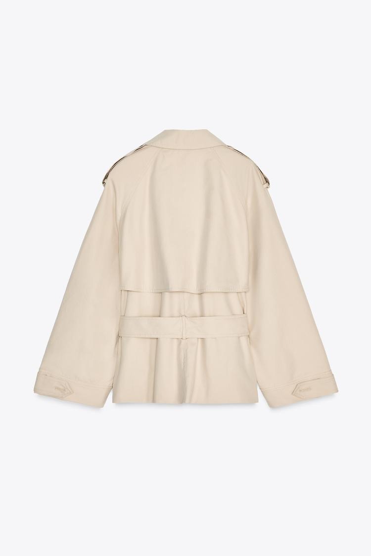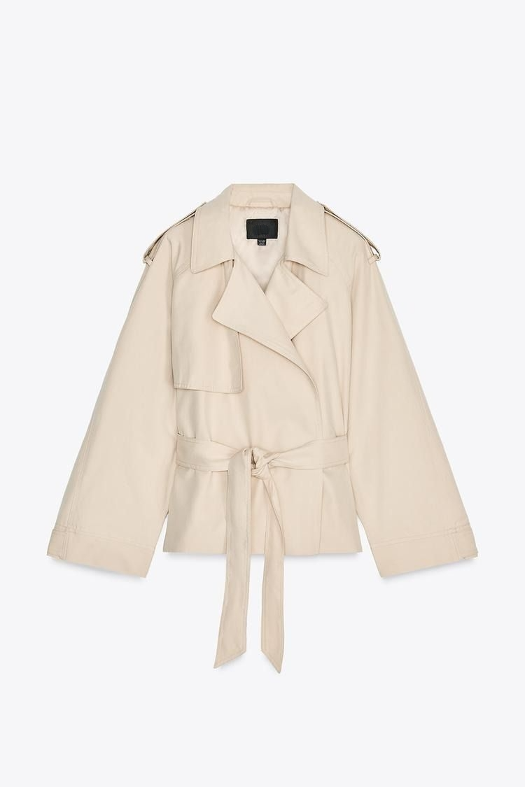 Trench court à col à revers, conçu pour une allure chic et moderne. Ses manches longues aux épaules tombantes et ses détails à passants ajoutent une touche structurée. Doublure intérieure contrastante et ceinture assortie à nouer pour souligner la taille avec élégance.