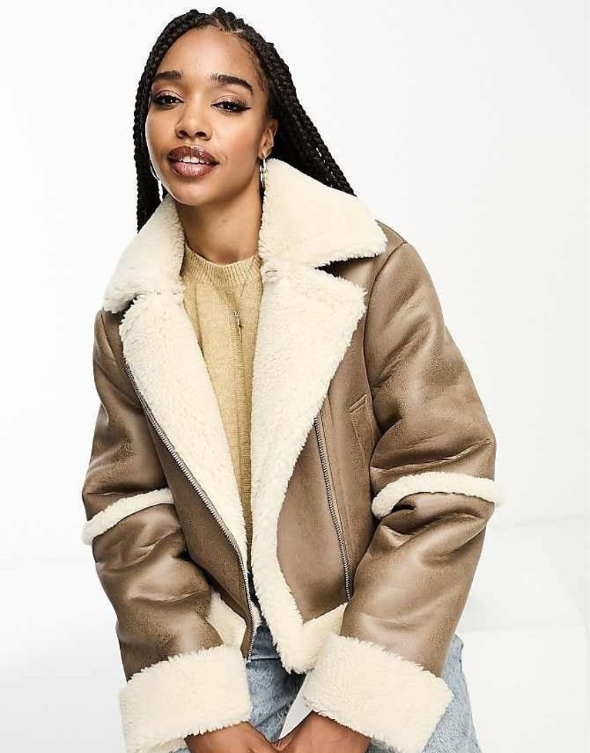 Veste aviateur courte en imitation peau de mouton