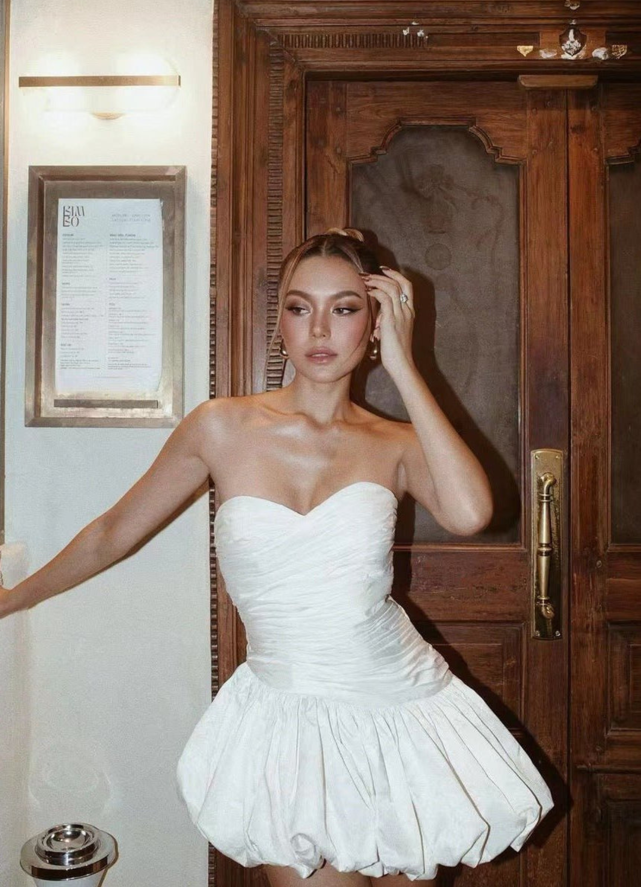 Cette robe courte pour femme avec un design sans bretelles offre une silhouette flatteuse et un confort optimal. Sa coupe bouffante et sa taille empire apportent un charme unique, parfait pour les journées estivales et les occasions décontractées. Facile à porter et à associer, elle est idéale pour une sortie entre amis ou un événement informel.