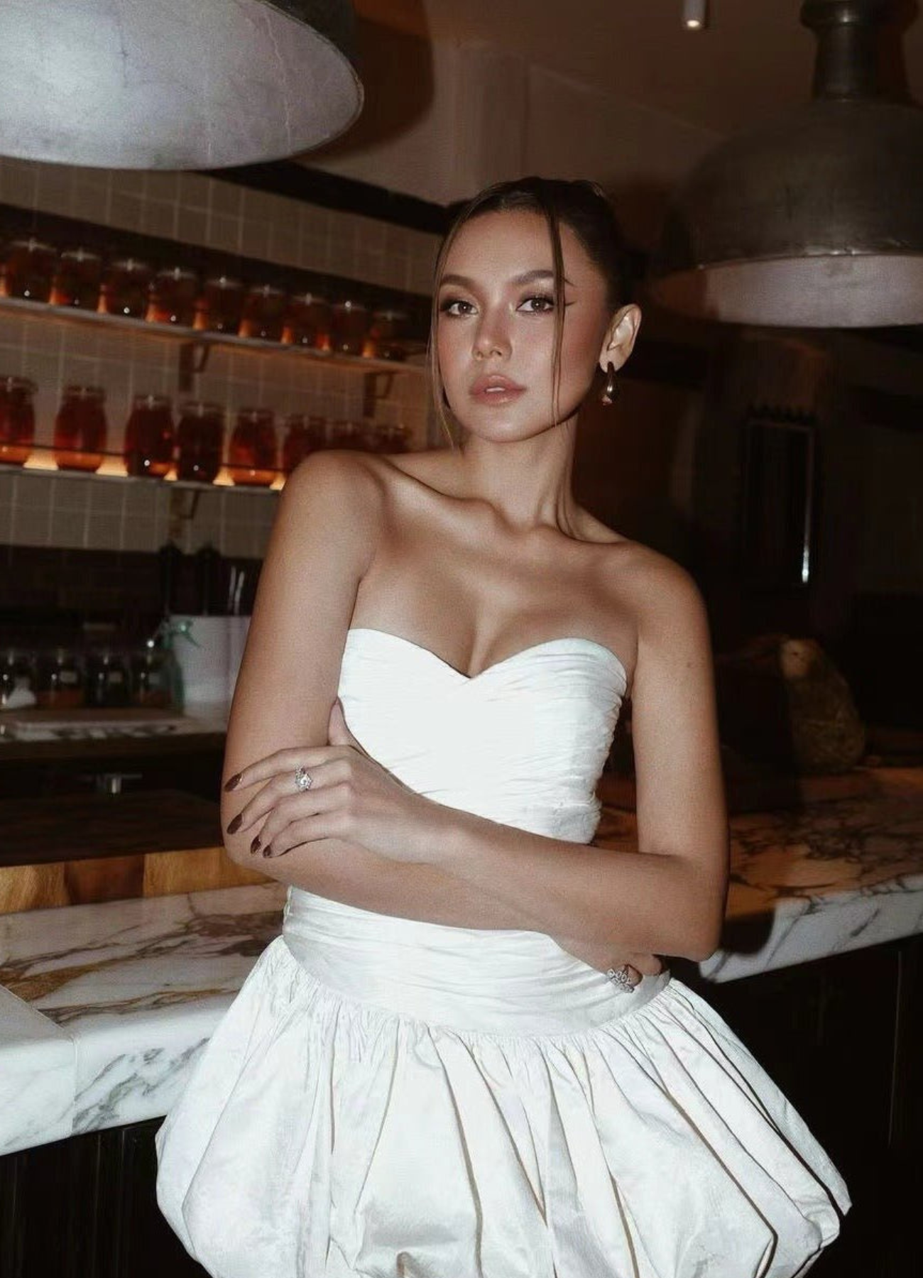 - Design sans bretelles : Une coupe moderne et élégante qui met en valeur les épaules et offre une allure féminine.